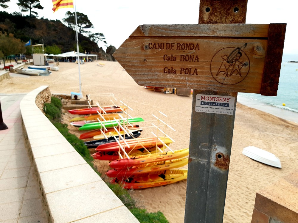 Pel matí, després d’esmorzar uns croissants 🥐 a la Platja Gran de Tossa, caminem per l’Avinguda de Sant Raimon de Penyafort fins arribar a la Platja Mar Menuda, que és on trobarem els indicadors del camí de ronda fins a Cala Pola.