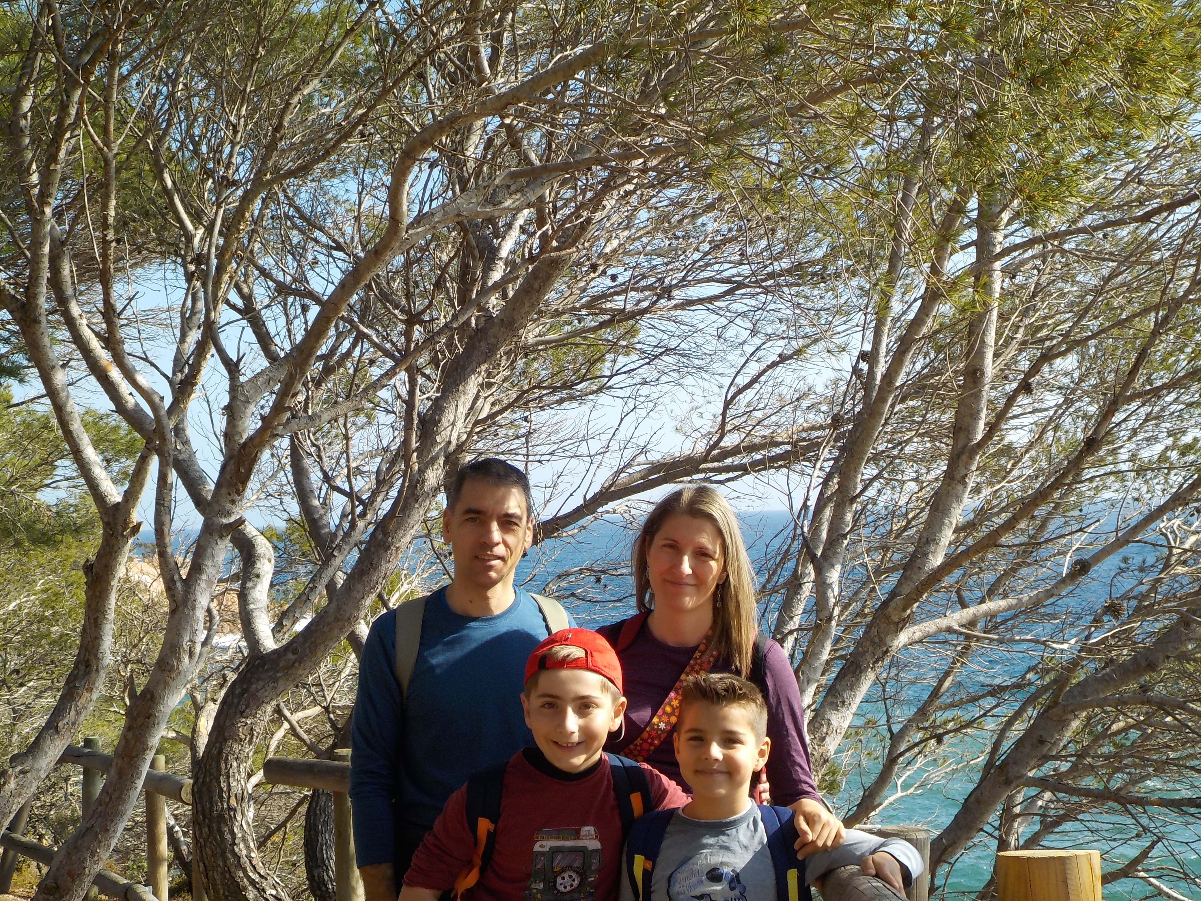 Ja de tornada, a mig camí, ens aturarem sota la pineda per dinar contemplant els imponents penya-segats.