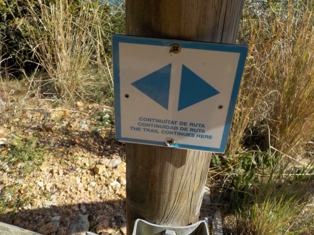 Després de deixar enrere la platja, vam començar l’excursió al costat del Club Nàutic agafant un camí de terra que surt a mà esquerra, tot seguint el rètol de la fotografia ( ❗vigilar perquè queda una mica amagat)