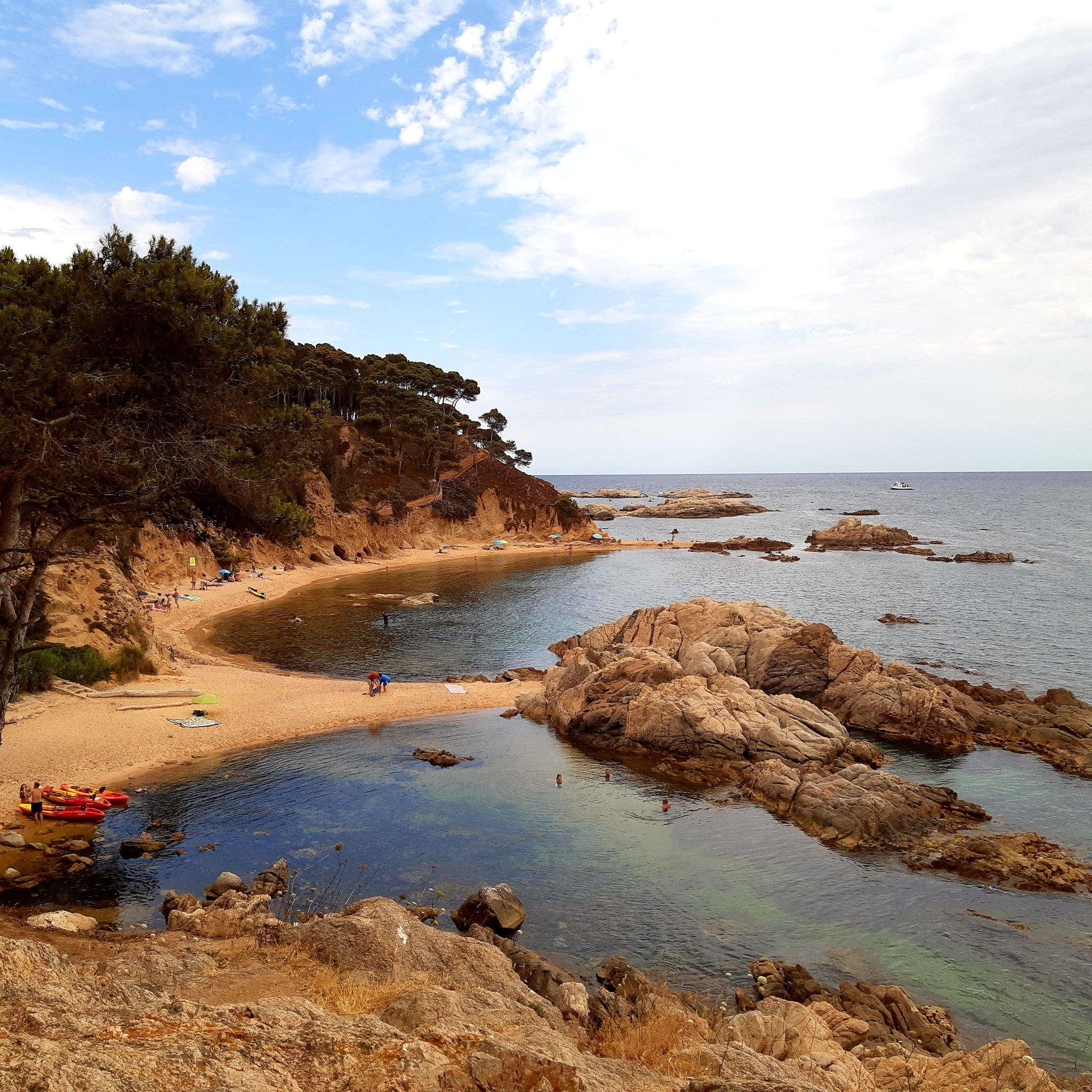Un cop haurem creuat aquest petit nucli de casetes seguirem el GR i arribarem a la platja de Castell, una de les úniques platges verdes de la Costa Brava. La recorrerem i ascendirem uns 35m fins al Poblat Ibèric, on hi han restes arqueològiques del s. VI aC. Ens enfilem una mica i entre pinedes 🌳🌳 vorejarem des de dalt la cala Senià, la cala Canyers i la Cala Corbs. No hi podem baixar i banyar-nos perquè estan tancades per perill d’esllavissades 🚫, una llàstima perquè estan en un enclavament espectacular.