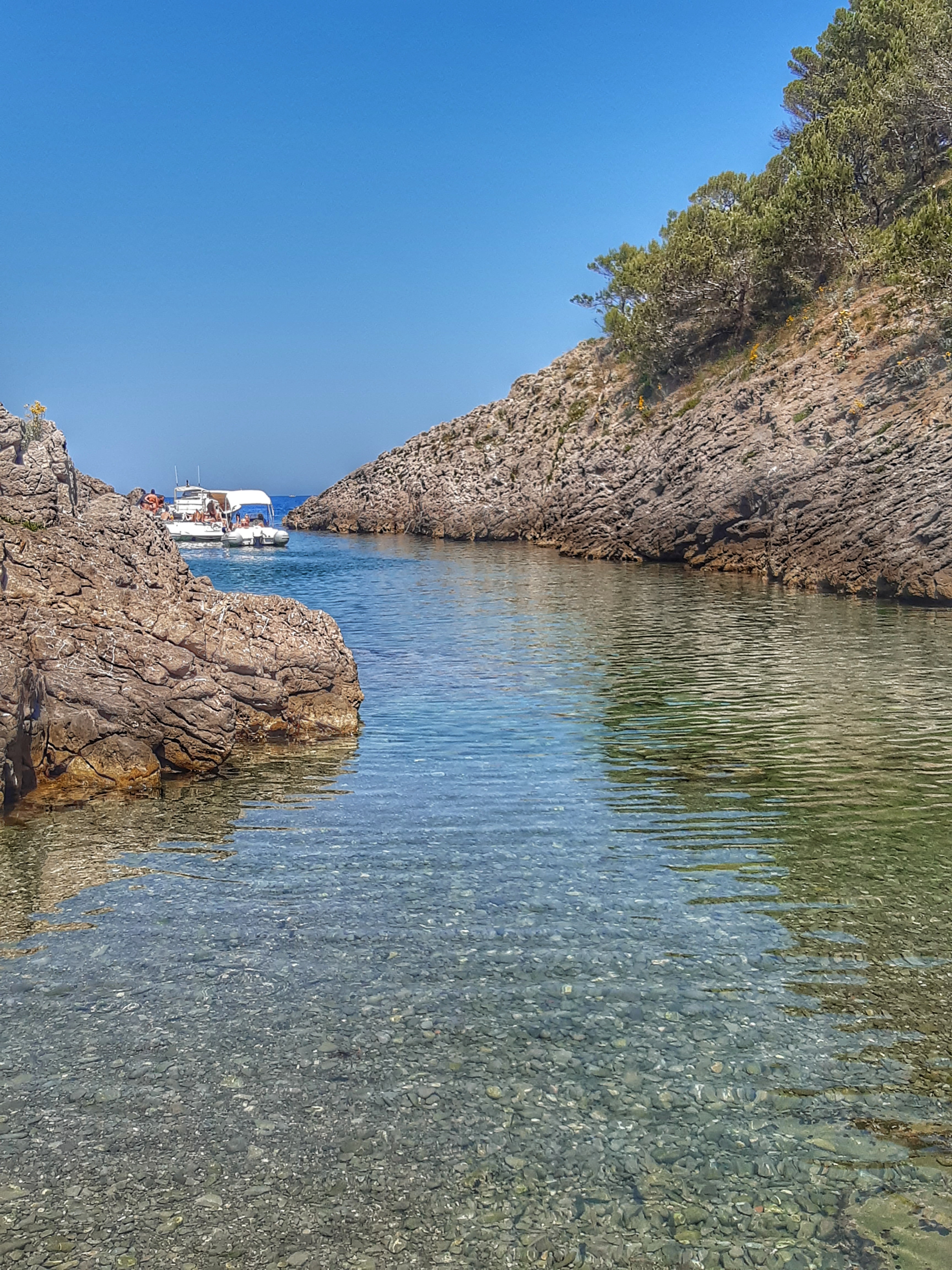 Un cop a la Cala Ferriol, aprofitarem per recuperar forces, refrescar-nos a les seves aigües cristal.lines i dinar els entrepans 🥪 que portem. És important portar escarpins si no vols patir de valent per entrar al mar, ja que es tracta d’una cala plena de còdols.