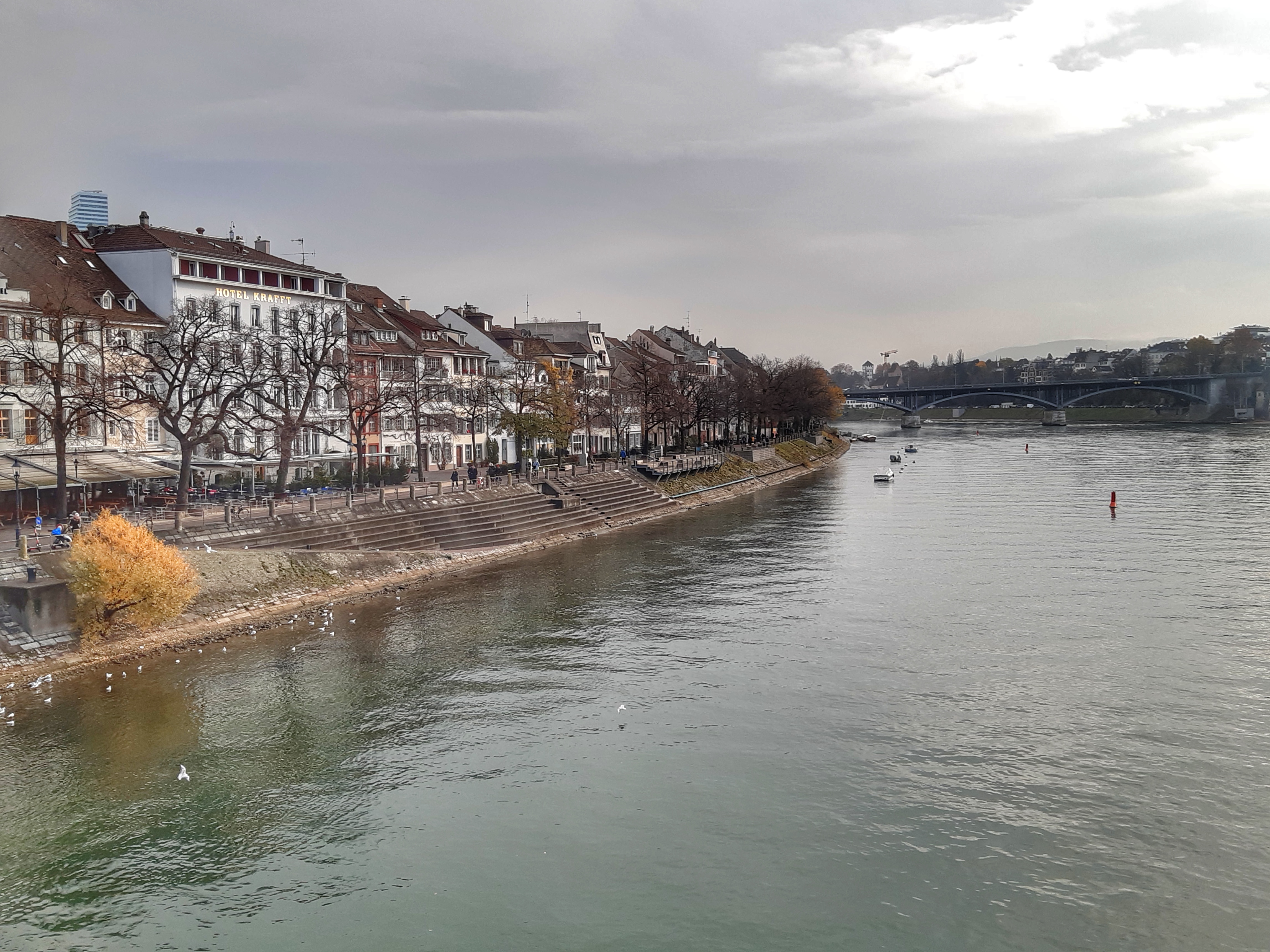 Un cop creuat el pont, vam caminar per la riba oposada (el bucòlic passeig d’Oberer Rheinweg) des d’on vam obtenir les millors vistes 🤩 de la ciutat i de la catedral, fins al pont Wettstein.