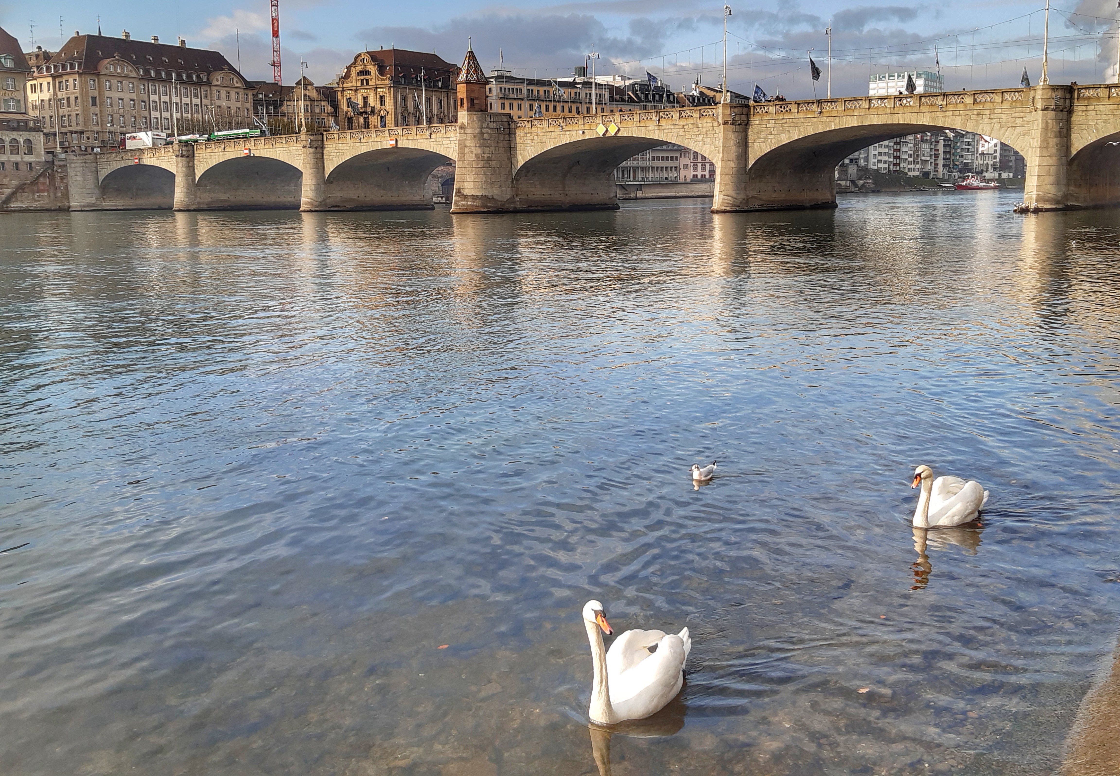El Mittlere Brücke, inaugurat el 1226 i reconstruït el 1905 per habilitar el pas del tramvia elèctric 🚃, és el pont més bonic de Basilea . Des d´aquest pont, un dels més antics sobre el Rin, entre el Llac Constança i el Mar del Nord, vam tenir una fantàstica panoràmica 😍 de les cases situades a la riba del riu i les torres de la catedral. A més de les vistes, vam veure una reproducció de l’antiga capella de fusta que estava al primer pont, situada a la meitat del pas