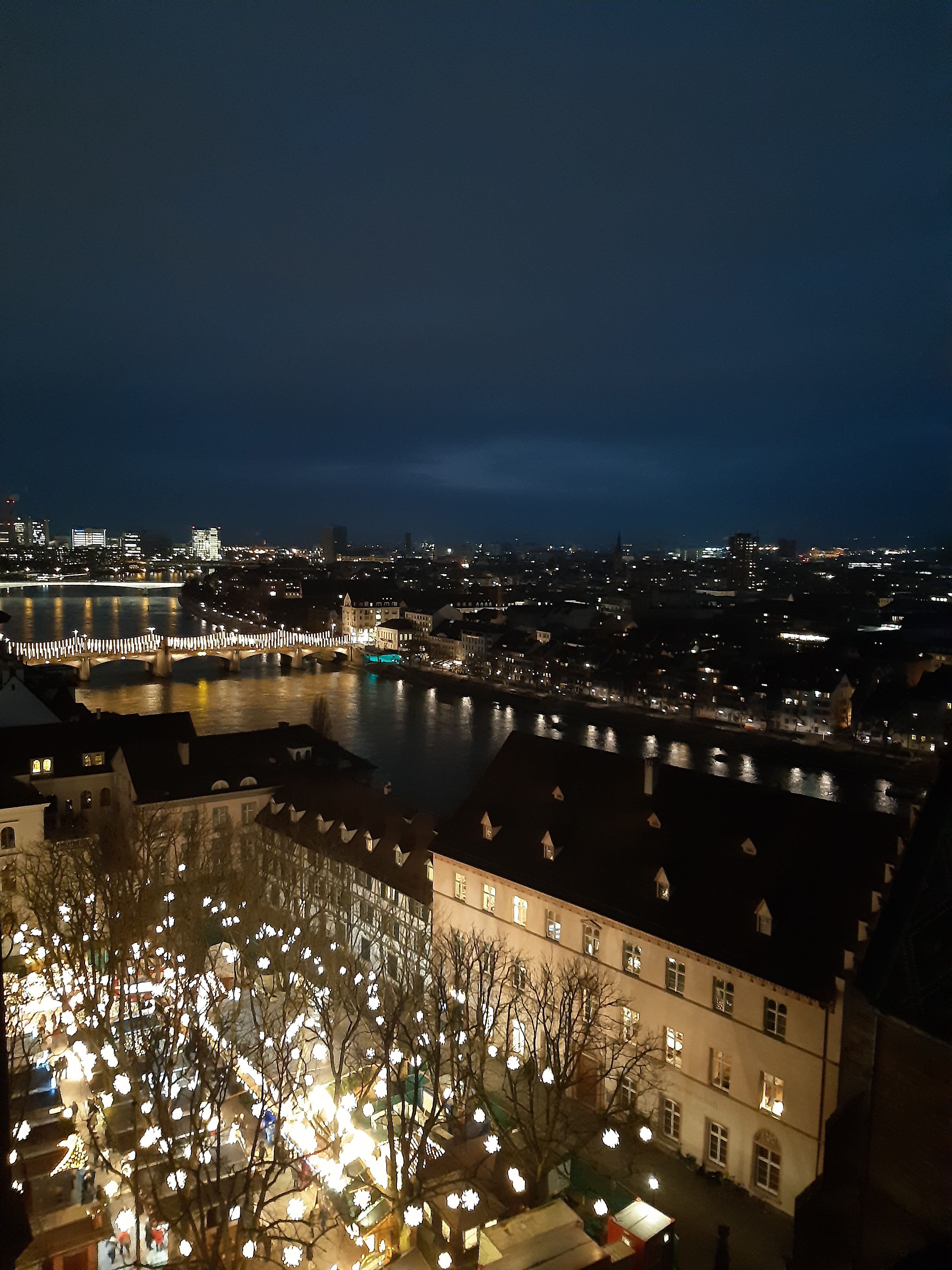 Cada any, durant el temps de l’Advent, l’escala de la Torre Martin de la Catedral de Basilea també s’il·lumina al vespre entre les 16.00 i les 18.00 hores de dilluns a divendres del 🗓 28 de novembre al 22 de desembre de 2022. L’última entrada és a les 17.30 h i costa 6 CHF per persona. Nosaltres vam pujar cap a les 17:00h. Als quatrequevolten ens agarada molt pujar a les torres de les ciutats que visitem per tenir una nova panoràmica de l’indret. Des de la torre vam tenir una visió molt especial del nucli antic il·luminat per Nadal i del riu Rhin.