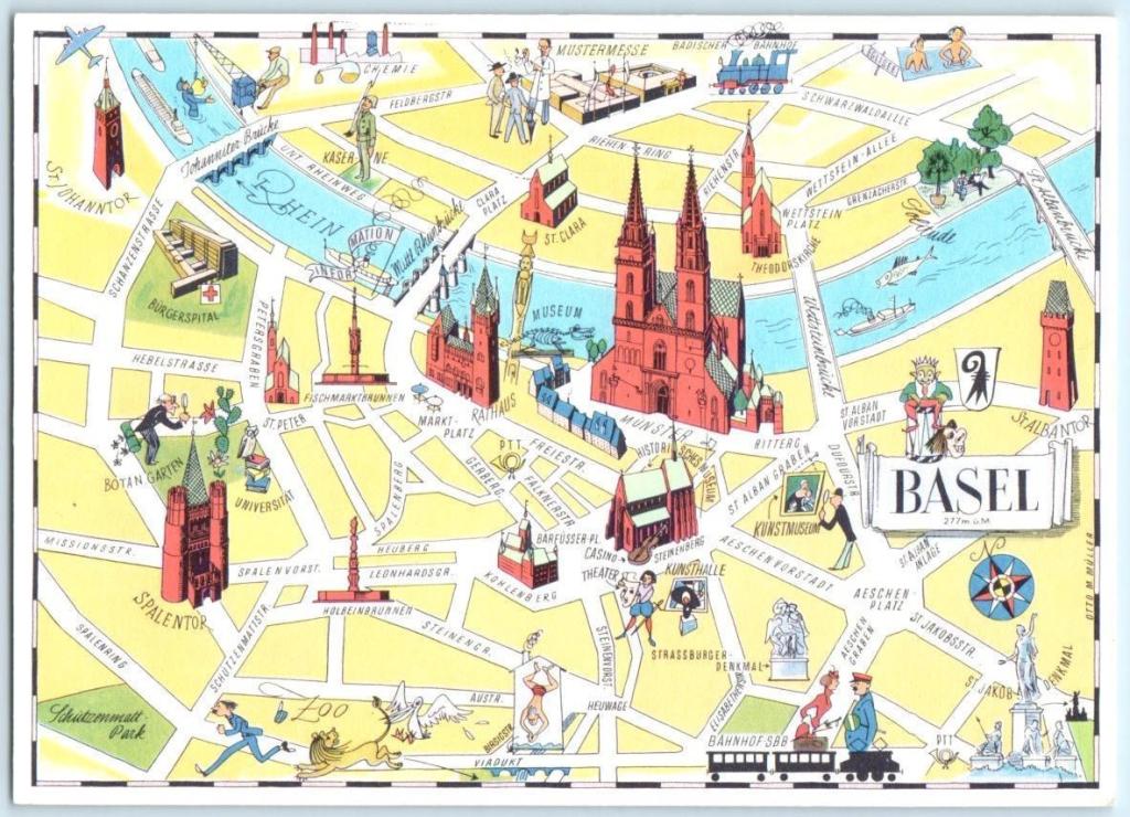 La bucòlica ciutat de Basilea està divida en dos districtes separats pel riu Rhin: Grossbasel (Gran Basilea) la part més antiga i Kleinbasel (Petita Basilea) la part més residencial.
