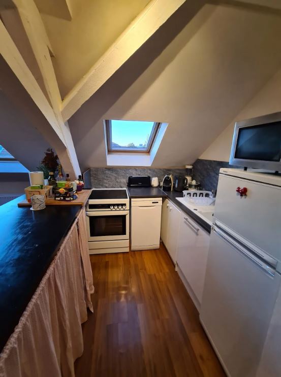 ✏️ L’apartament on ens hem allotjat a Basilea constava de 2 habitacions amb bigues a la vista, situat a la planta superior d’un petit edifici. L’apartament es trobava molt ben situat, a 1km de l’estació del tren i del tramvia 🚃 i a menys de 100m de la parada d’autobús (n. 604) que ens va permetre apropar-nos a Basilea en menys de 15 minuts. L’apartament disposava de rentadora, cuina americana, rentavaixelles, vitroceràmica, bany amb dutxa d’hidromassatge i assecadora comunitària.