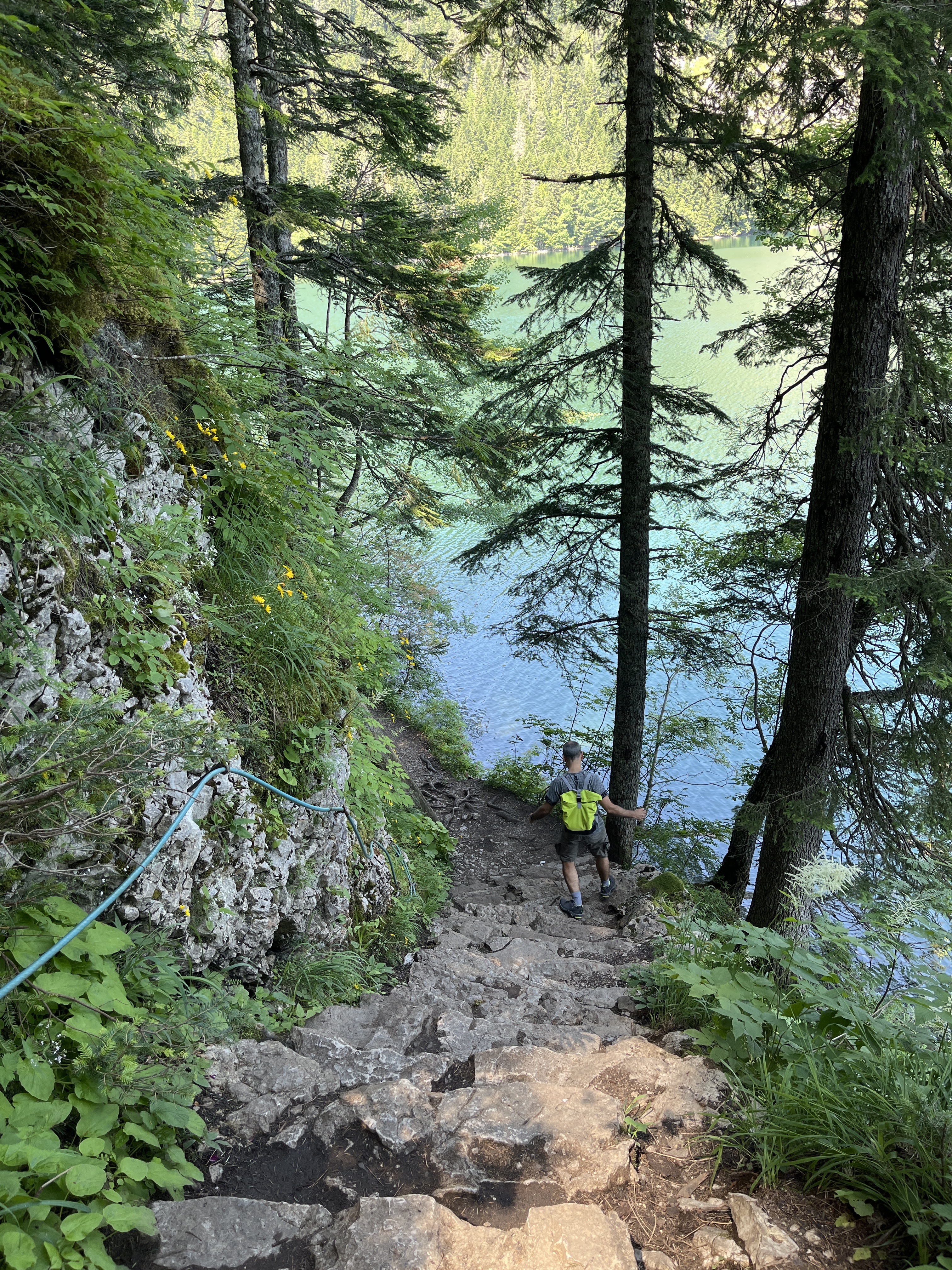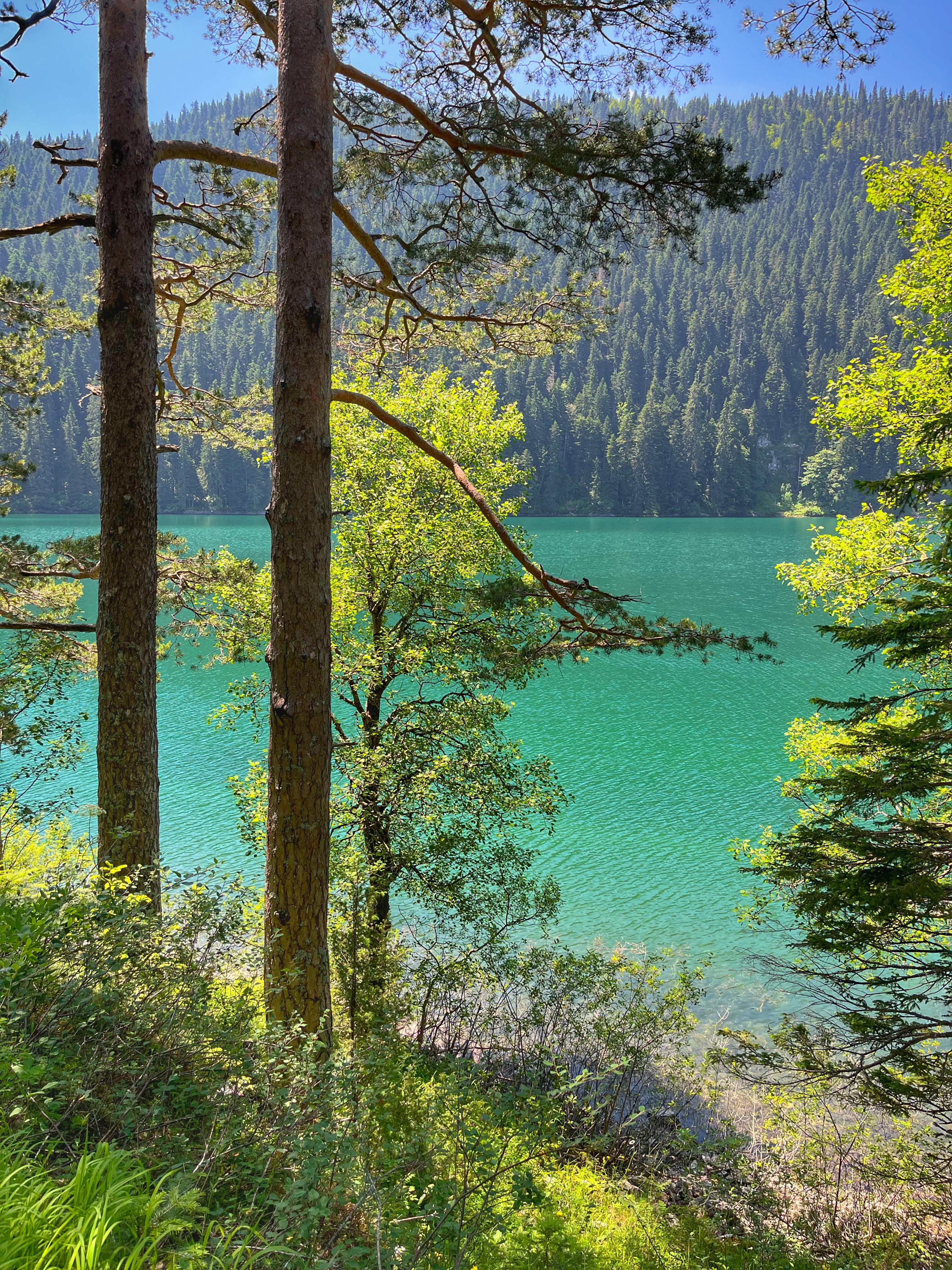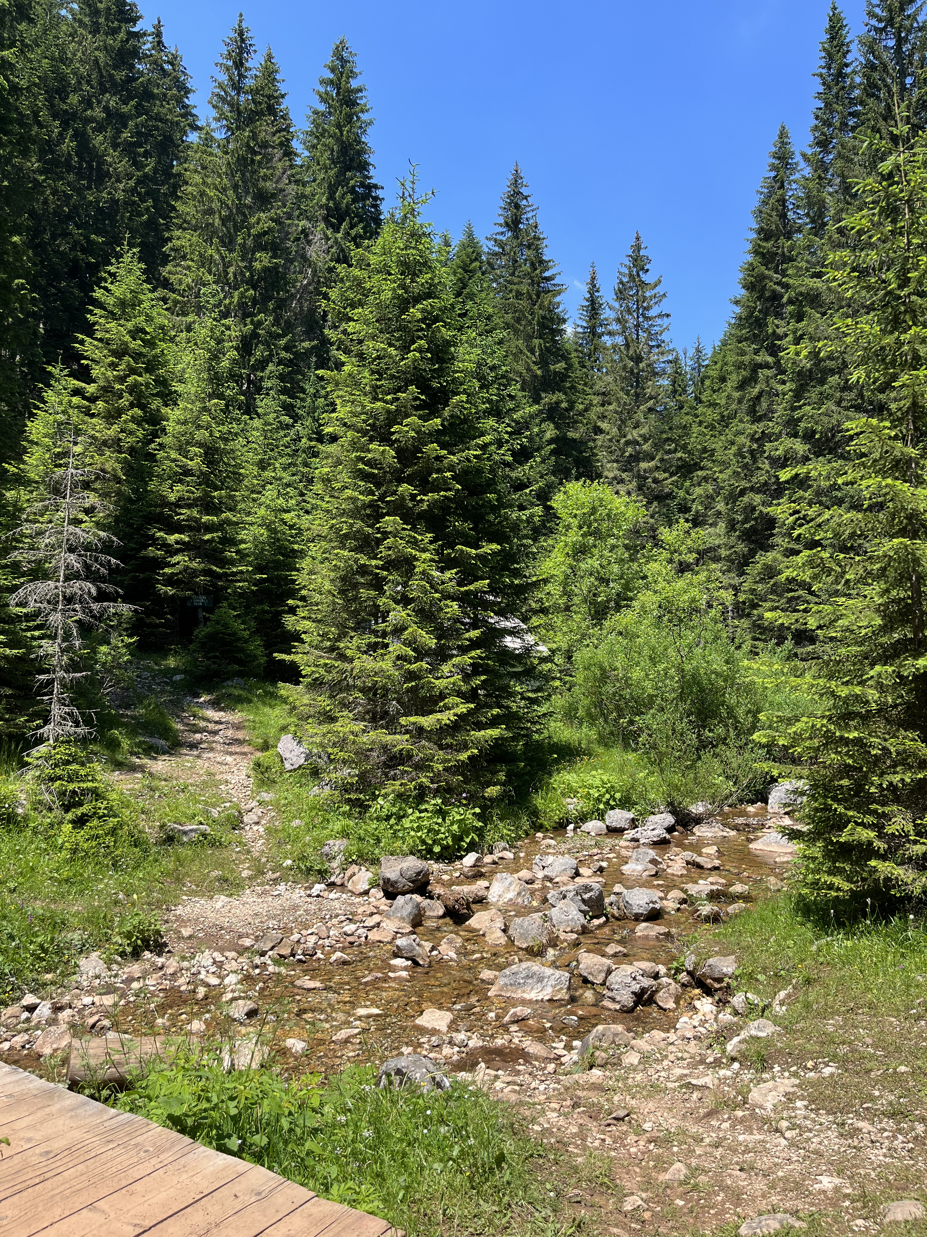 El llac Crno Jezero (Llac Negre) és una llacuna d’origen glacial situada a més de 1.400 metres d’alçada. És el llac més gran i profund de Durmitor, format quan les glaceres van retrocedir després de l’última edat glacial , fa uns 10.000 anys. És curiós perquè de negre no en té res 🤭. Les seves aigües són transparents i de cridaners tons maragda i turquesa , completament envoltats d’altes muntanyes i boscos densos de pi negre. En dies ennuvolats el reflex dels pins si que li donen una coloració negre. Una veritable meravella 🤩!!! No vam poder parar de fer fotos 📸 amb els impressionants reflexos que es formen al llac!
