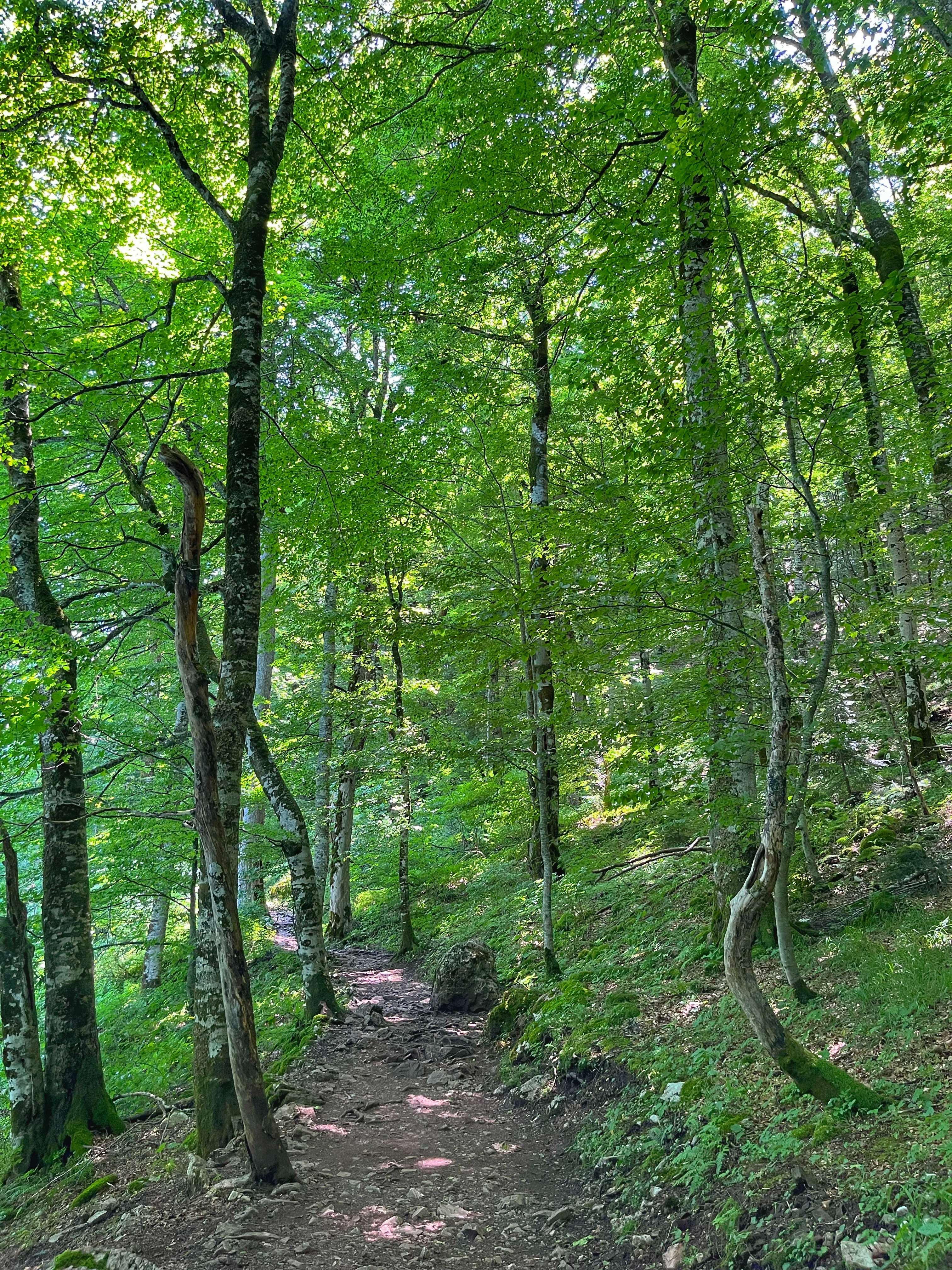 Després de gaudir de les vistes des del pont vam agafar la carretera que discorre paral.lela al canó del riu Tara fins arribar al Parc Nacional de Biogradska Gora de 50km2 amb espessos boscos d’arbres centenaris, pics de més de 2.000m d’altitut i tot un rosari de llacs glaciars. Situat a la part central del massís muntanyós de Bjelasica, entre dos bells rius (Tara i Lim), està considerat l’última jungla salvatge europea. Entre la seva verdor exuberant hi viuen ossos marrons centreeuropeus, llops, diverses espècies de vívores i aus ancestrals en perill d’extinció. Aquí la temperatura és uns 10 graus menor que a la costa.