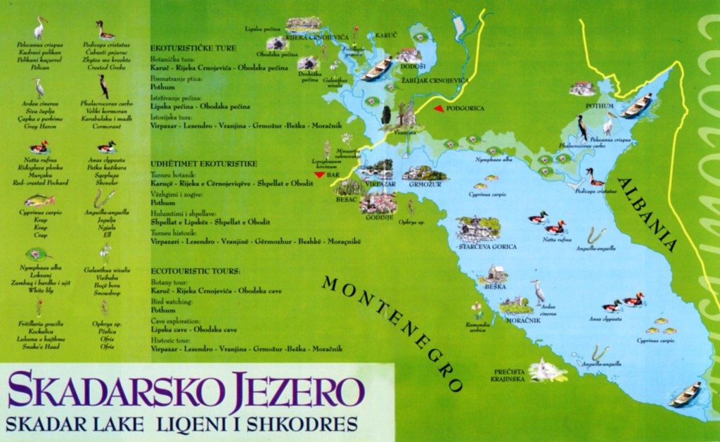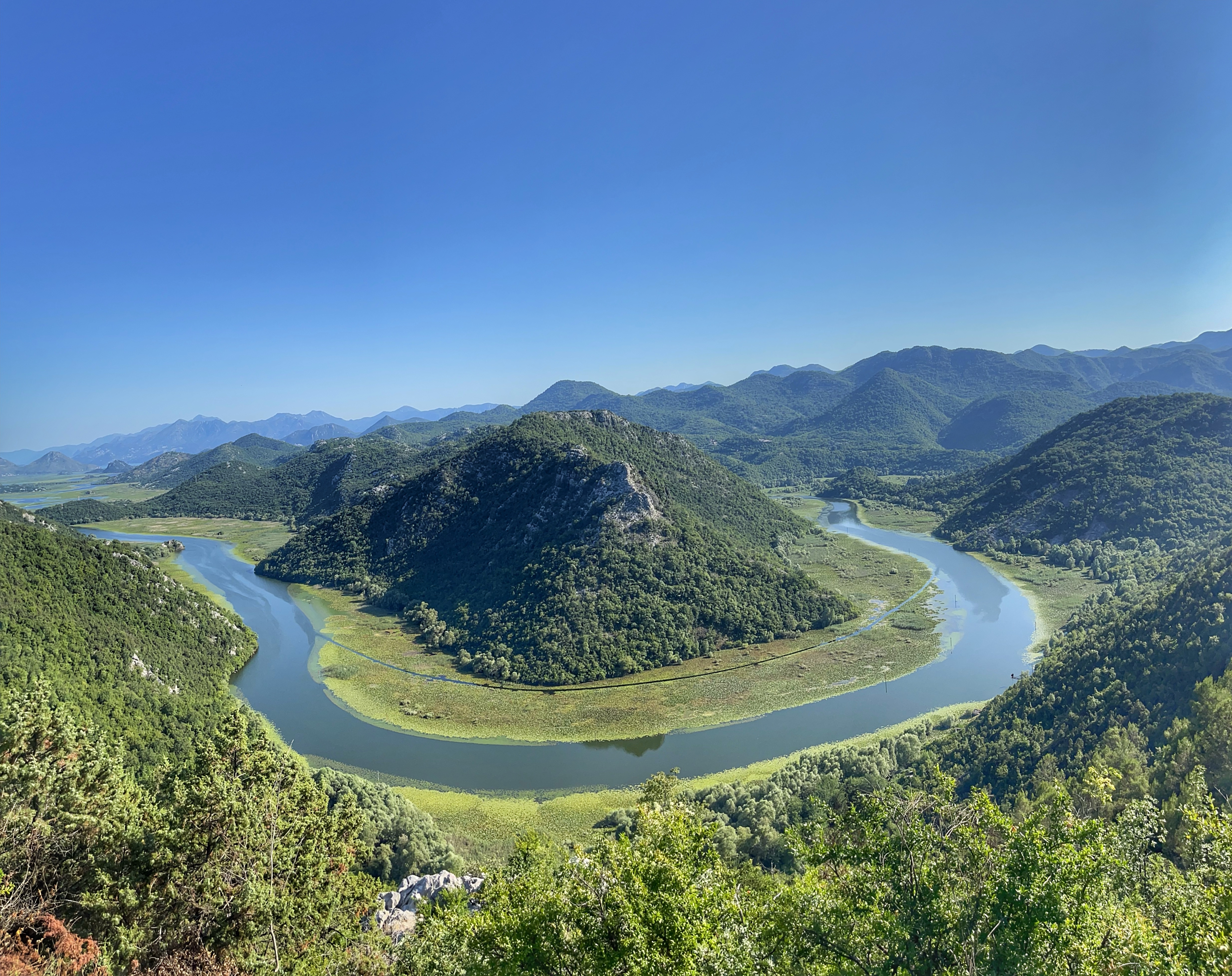 Aquella mateixa tarda, encara vam tenir temps de veure el llac Skadar al Parc Nacional de Skadar, el més extens dels Balcans i ubicat a la frontera amb Albània. El llac Skadar en forma de dofí 🐬, té la cua i dos terços del cos a Montenegro i el nas a Albània. A la part montenegrina, una àrea de 400 km² està protegida per un parc nacional des de 1983; avui, Skadar és conegut com un dels principals hàbitats d’ocells d’Europa, sobretot del pelicà cenyit. És una zona meravellosament bonica que inclou muntanyes escarpades, monestirs insulars, aigües clares i prats flotants de nenúfars. El riu Moraca omple el llac mentre que el riu Bojana el desaigua cap al mar Adriàtic.