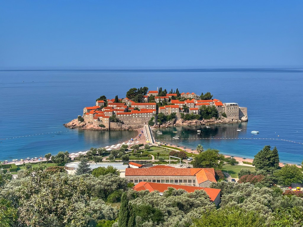 La primera parada va ser al mirador de Sveti Stefan, el lloc que tothom que aterra a Montenegro va buscant. Aquest lloc de conte de fades és una ciutat fortificada del s.XV, situada en una illa i connectada al continent per una estreta franja de terra. Actualment és una propietat privada del luxós resort Aman, i a menys que tingueu la cartera molt plena 💶💶 i us pogueu allotjar en una de les 50 exclusives habitacions del seu complex hoteler, us haureu de contentar en veure les vistes des de la platja o el mirador.