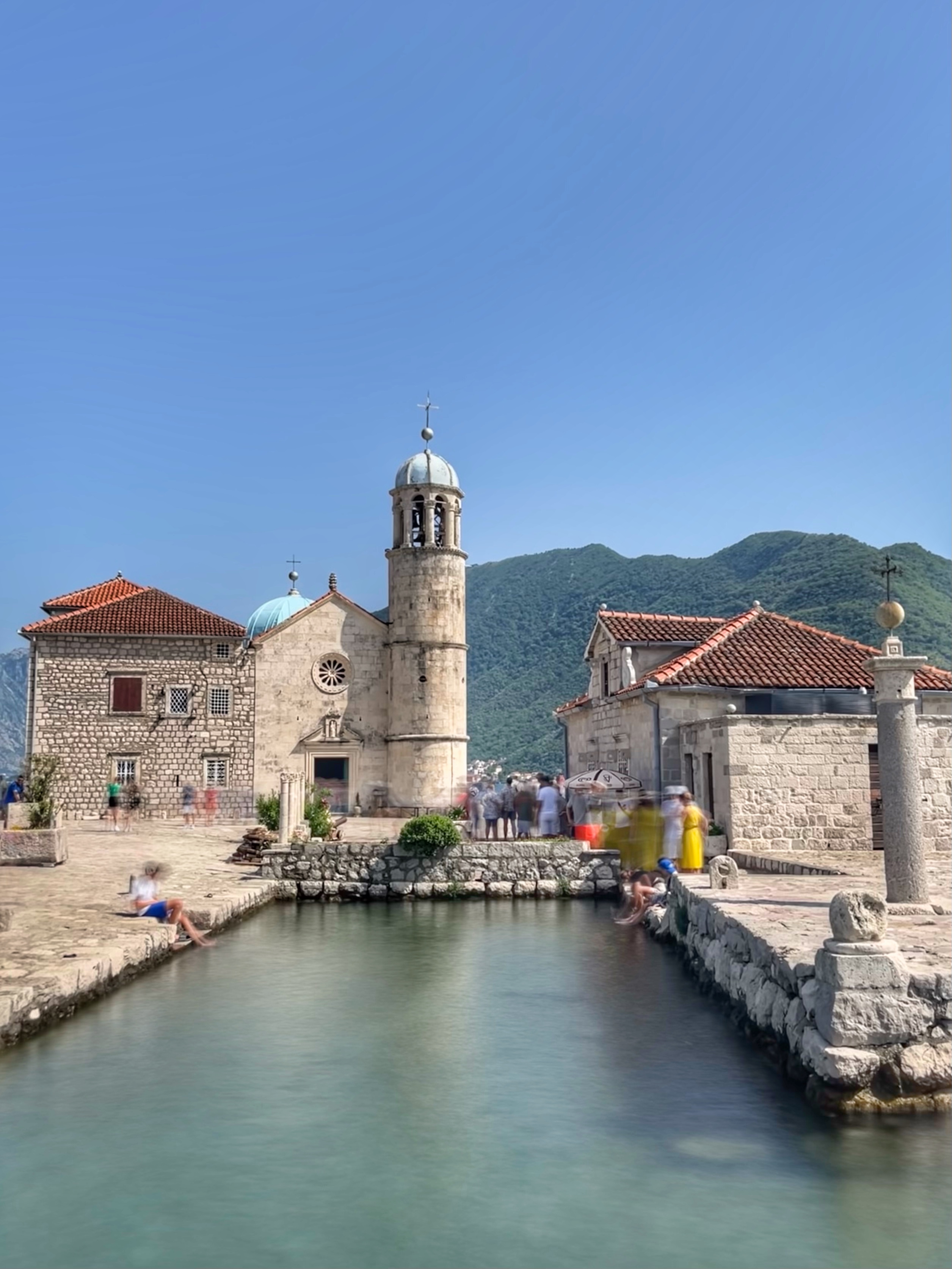 Davant de Perast, al mig del mar s’aixeca la sorprenent església de Nostra Senyora de les Roques, un temple catòlic erigit sobre un illot artificial format per roques i restes de vaixells enfonsats. Segons explica la llegenda, uns mariners van trobar en aquest punt del mar una imatge de la verge i van decidir construir una església en honor seu, encara que per això necessitaven un tros de terra on emplaçar-la.