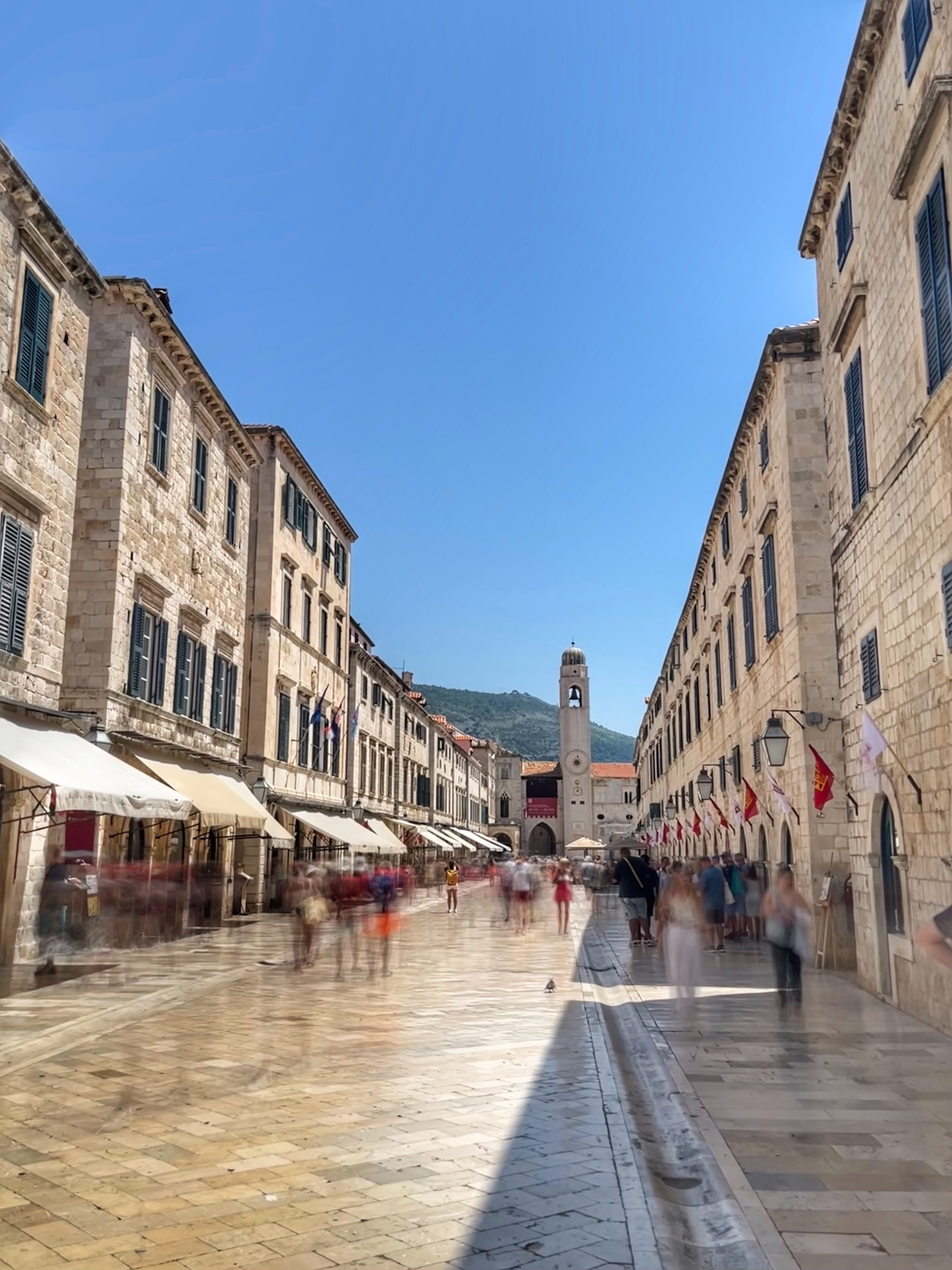 Vam entrar a la ciutat emmurallada per la Porta de Pile, una de les coses que més sorprèn de Dubrovnik és el marbre brillant dels seus carrers i els edificis plens de llum de tota la ciutat.