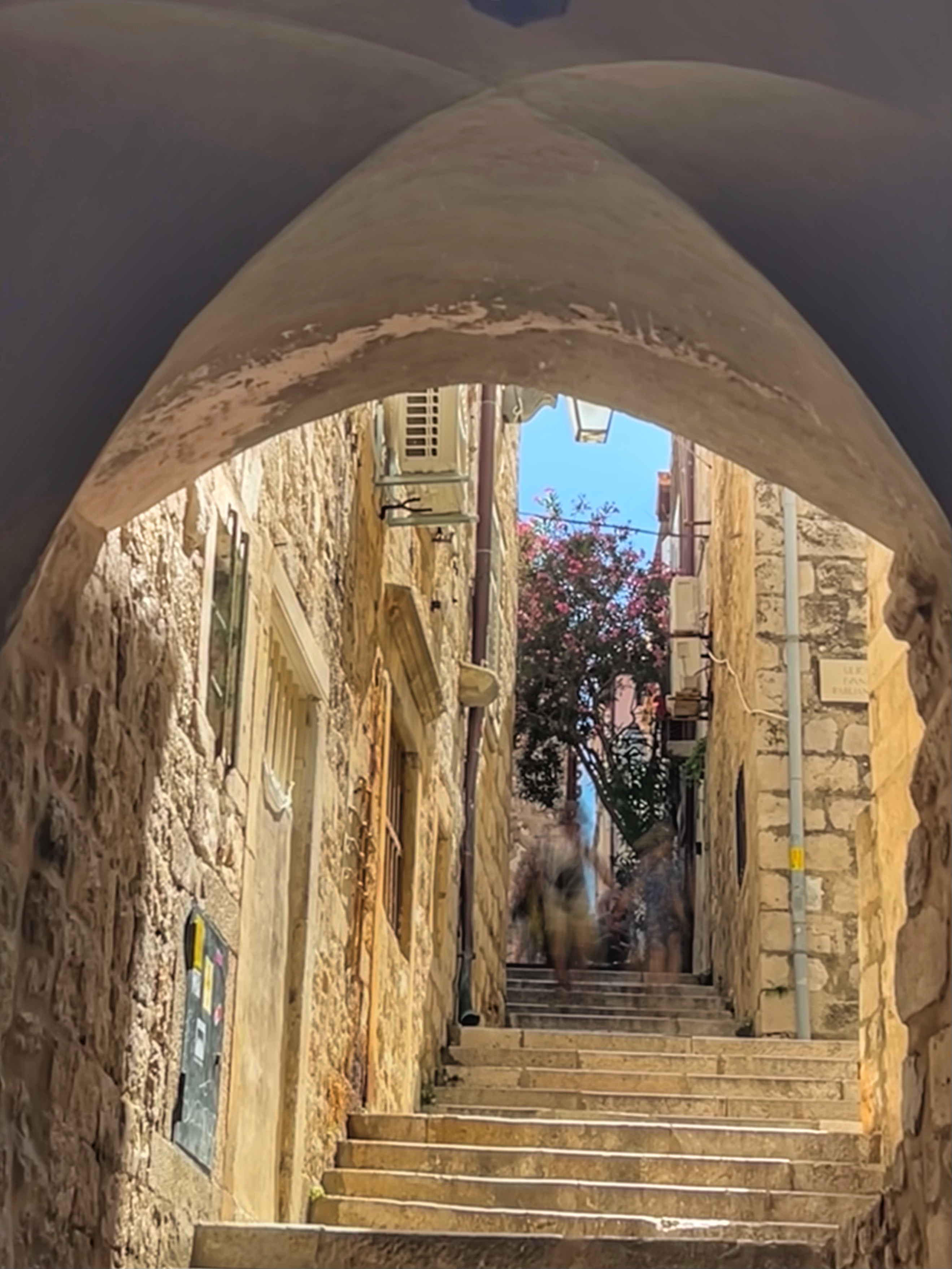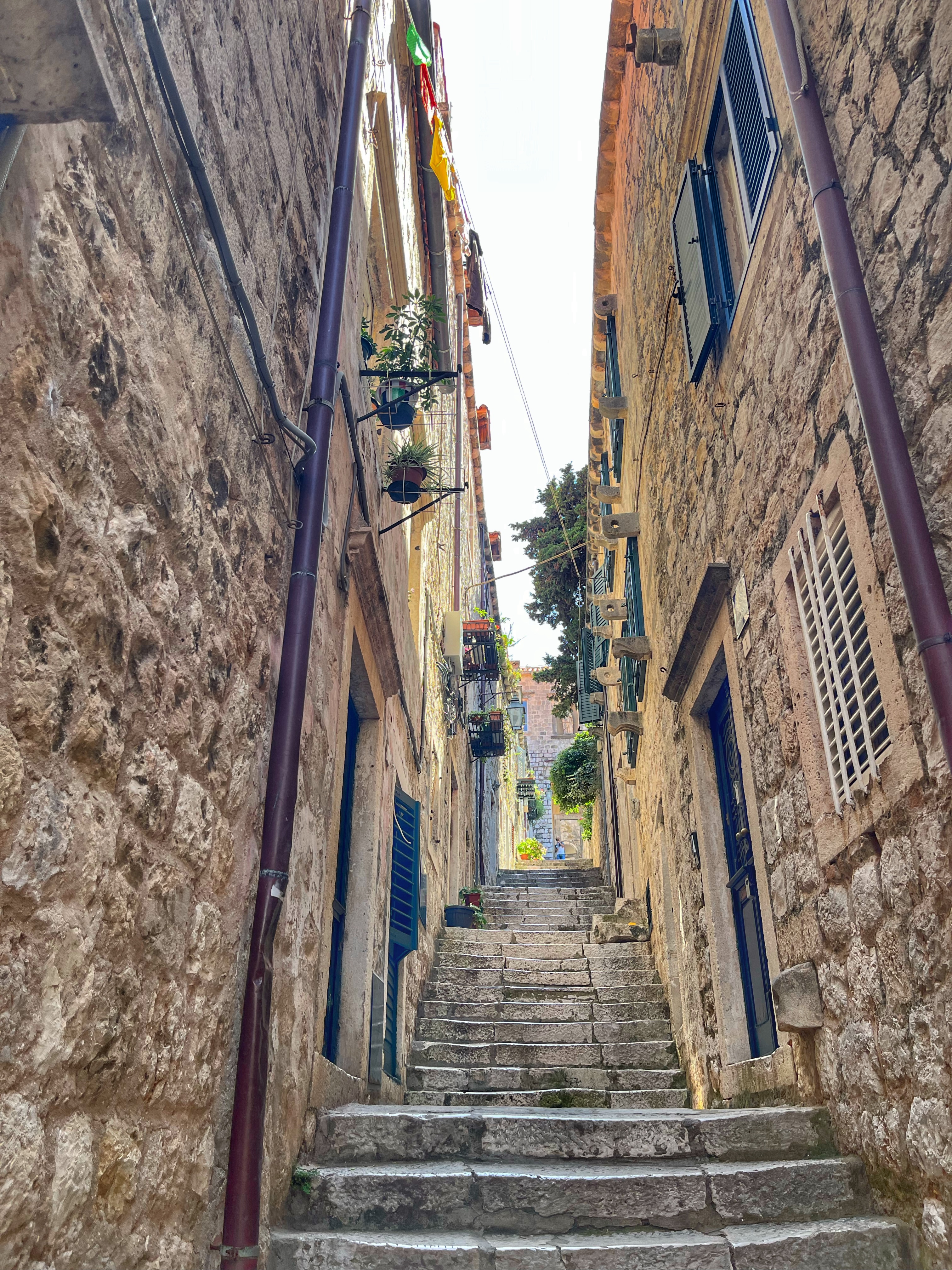 La millor forma d’explorar Dubrovnik és donar un passeig per les muralles (s.X), quasi 2km de recorregut, però la calor era tan asfixiant 🥵🔥 que ho vam descartar i vam preferir perdre’ns pels carrerons i escaletes on hi havia molta més ombra.