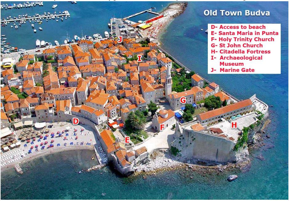 A la punta de la Ciutat Vella es troben les fortificacions de la ciutadella , un castell venecià que va jugar un rol clau en la defensa de la ciutat. Aquesta antiga fortalesa va constituir el principal bastió defensiu de Budva, protegint-la dels atacs marítims gràcies a les seves muralles, edificis militars i torrasses.