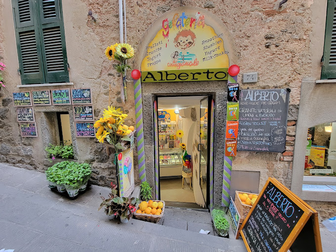 No marxeu de Corniglia sense tastar el gelat d’alfàbrega (basilico) de la Geladeria Alberto, elaborat amb alfàbrega cultivada al seu propi hort i oli d’oliva verge extra amb mel de Corniglia. Wow 🤤! Una combinació molt curiosa i refrescant.