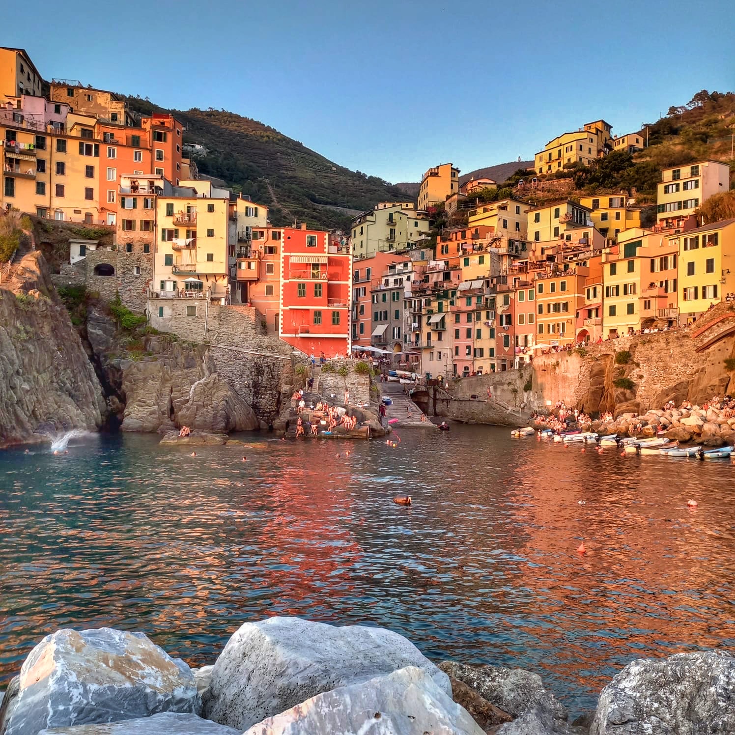 Manarola compta amb una bonica piscina natural de pedres, des d’on els més atrevits (els tres nois dels @quatrequevolten) van xalar de valent saltant des de les diferents roques.