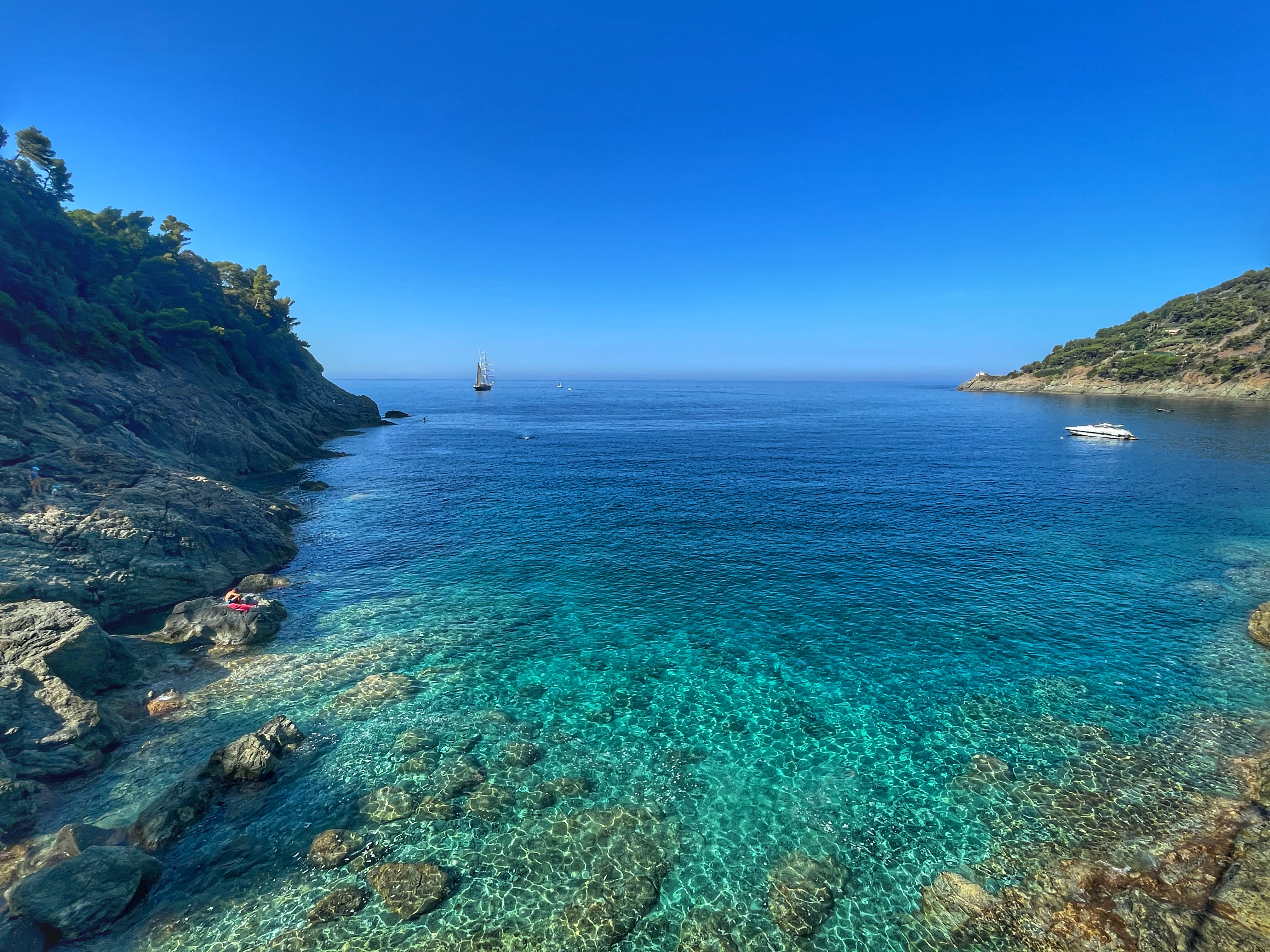 A la zona de la Fegina destaca la seva arquitectura moderna i de colors vius, molt pensat pels turistes i esquitxada d’hotels, on sobresurt una estàtua gegant del Déu Neptú de 14mt. De fet la Spiaggia del Gigante és una de les més boniques de la zona. En canvi a la zona antiga, on destaca l’església de San Giovanni Battista d’estil gòtic genovès, et pots perdre passejant pels seus carrerons estrets i empedrats (caruggi), tant típics de la Liguria. Aquí hi vam trobar una caleta molt acollidora i a més lliure de pagament, perquè a les Cinque Terre el 75% de les platges estan ocupades amb tumbones i para-sols que has de pagar 😖.