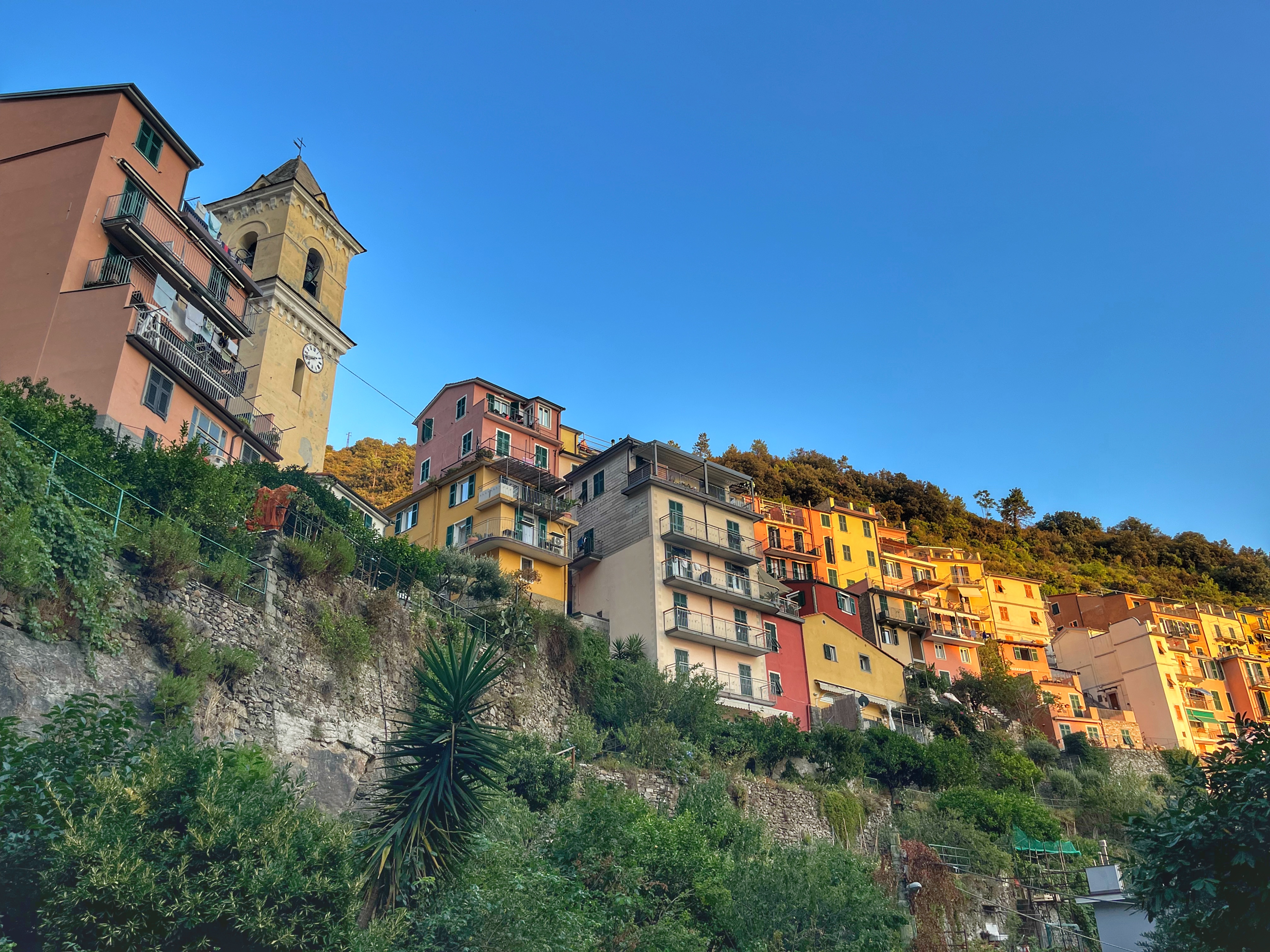 Precisament aquest desnivell va defensar la gent de Corniglia dels atacs dels pirates sarraïns. Aquí també vam quedar captivats pels colors pastel de les cases tradicionals de la Ligúria i pel laberint de carrerons i “caruggi” que amaguen unes vistes meravelloses.