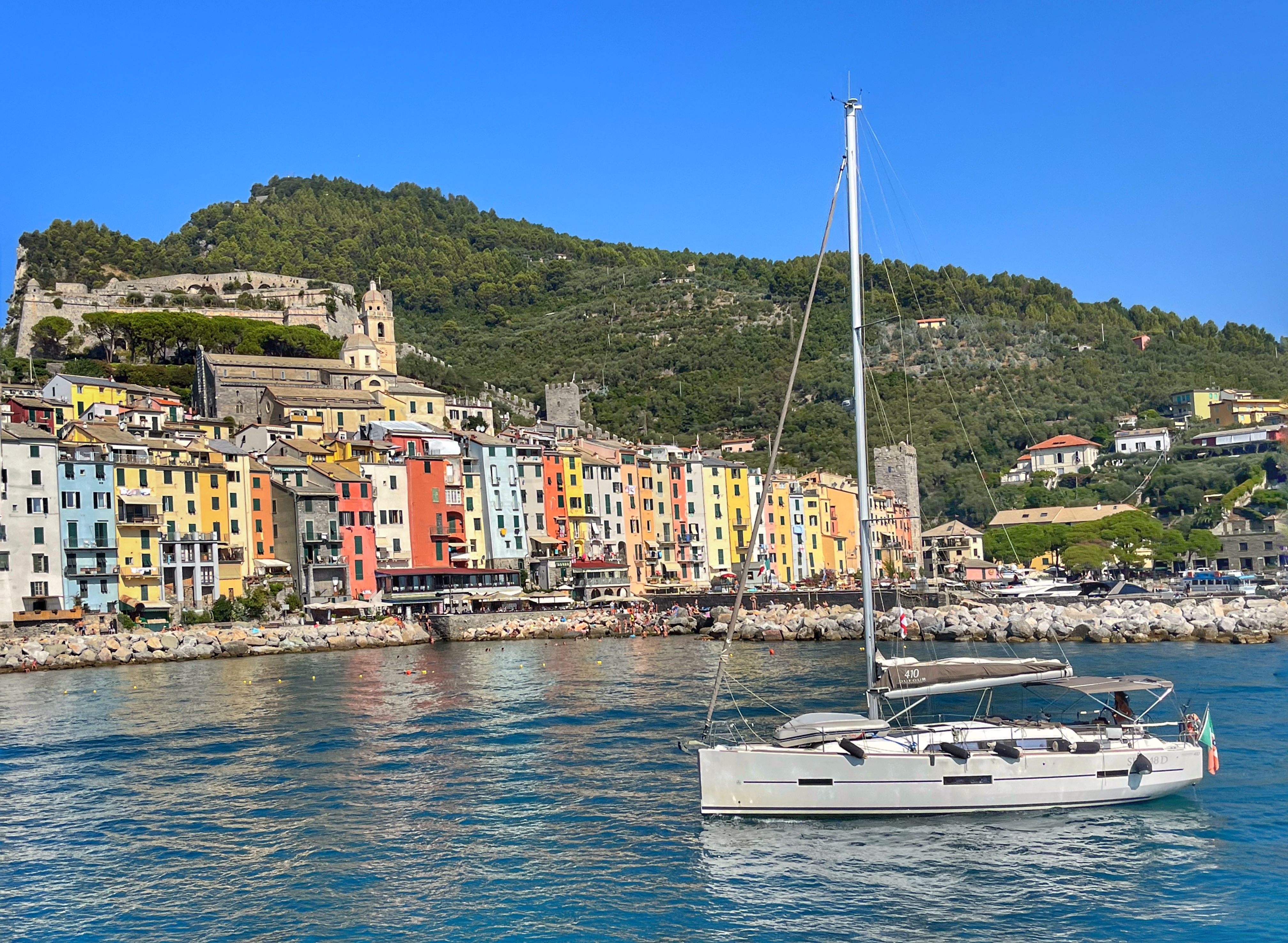 Si pagues el bitllet d’un dia, et permet anar pujant i baixant als pobles que triis i a més et podràs apropar a un altre romàntic poble declarat també Patrimoni de la Humanitat per la UNESCO: Portovenere. Petita vila situada a la provincia de la Spezia famosa per l’antic Castell Doria, les seves casetes de colors, les seves esglésies i les seves illes pintoresques amb nombroses coves. Nosaltres vam agafar aquest vaixell l’últim dia i així vam gaudir d’una panoràmica diferent de les Cinque Terre des del mar.