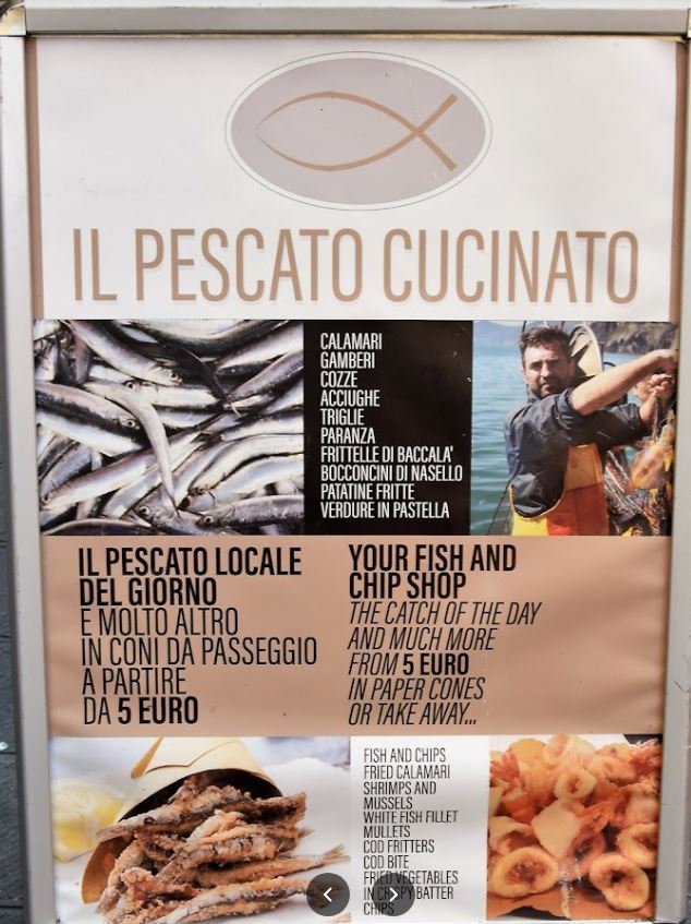 Una de les coses que podeu fer per acabar el dia , és pujar una mica per la Via Colombo fins al Il Pescato Cucinato (Via Colombo, 199 ): que ofereix cons de peix i calamar fregit per llepar-se els dits 😋!! Els preus oscil.len entre els 5-15€.