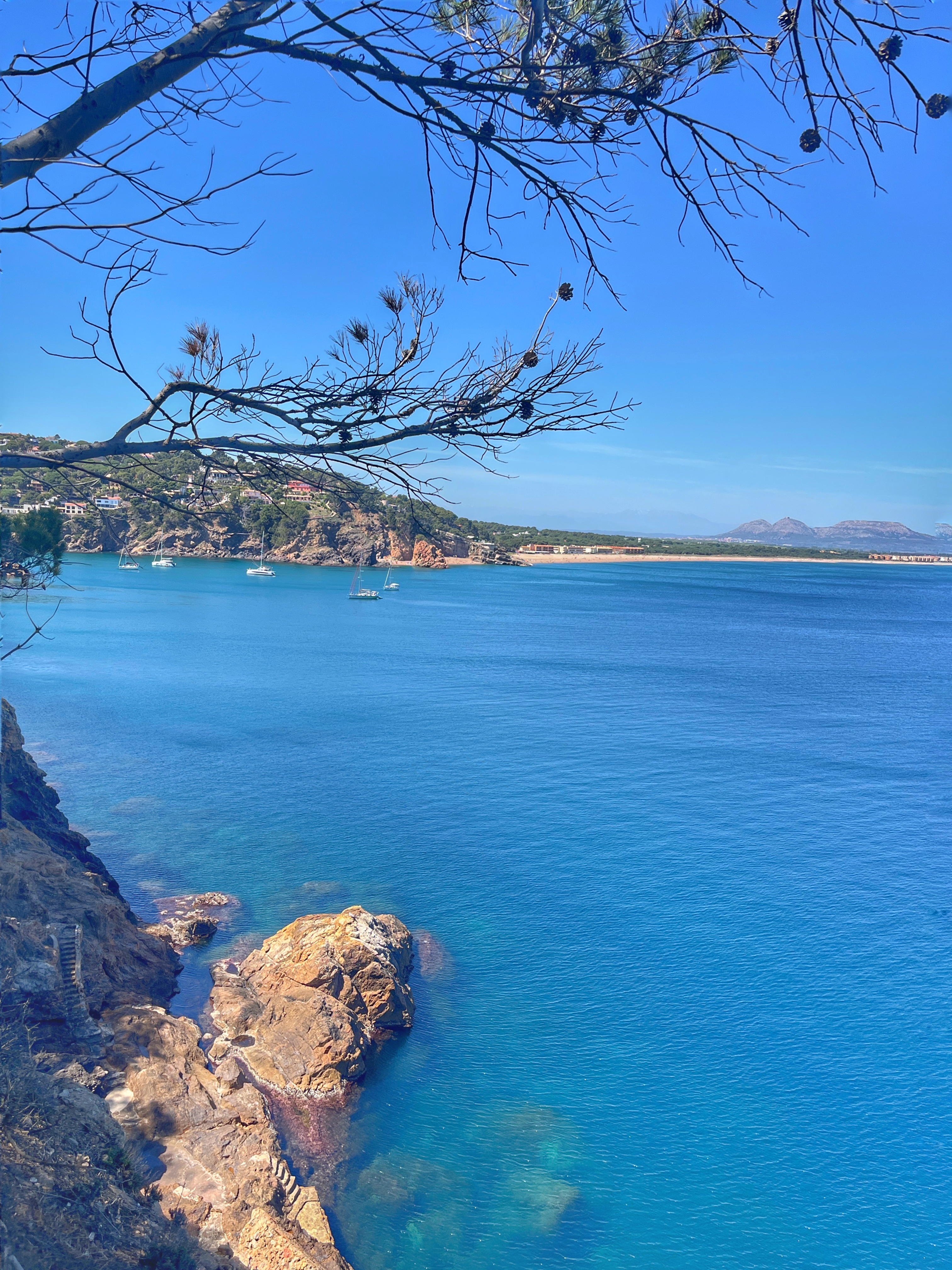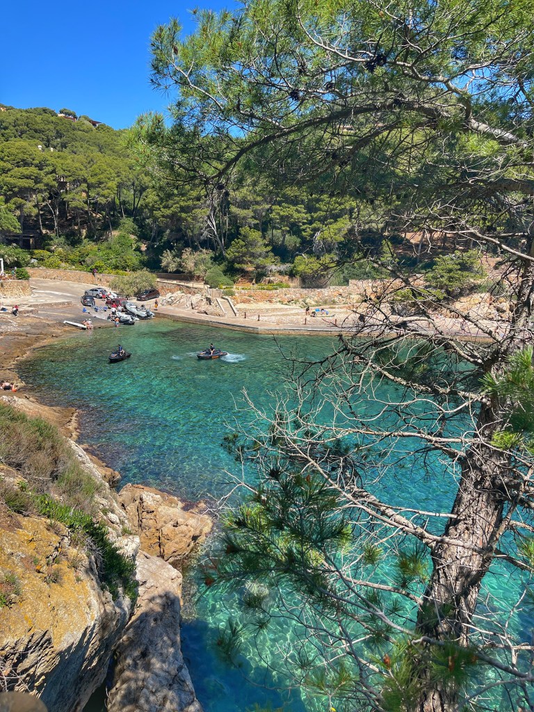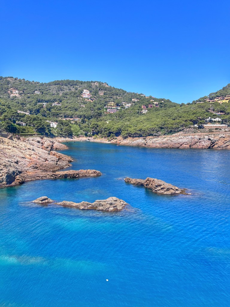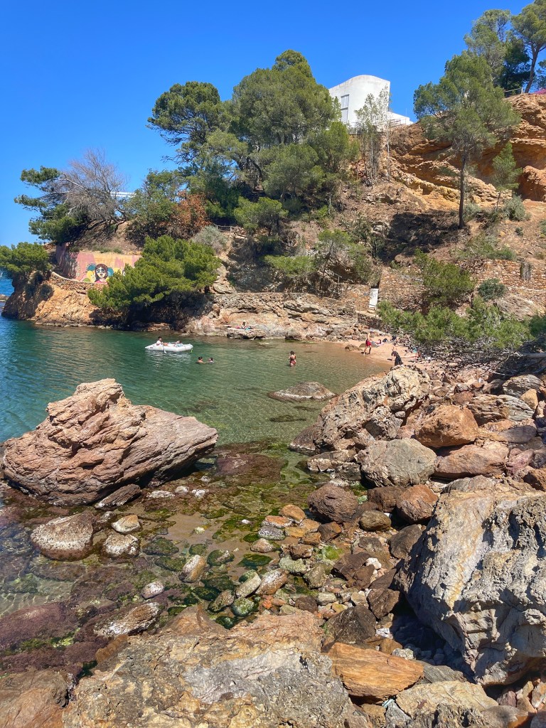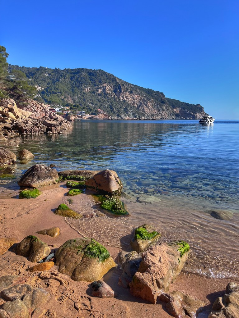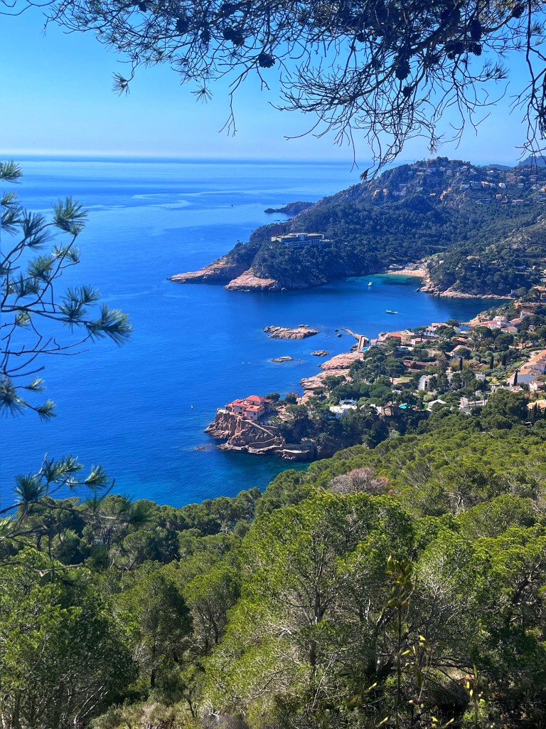 Comencem a l’encantadora 😍 platja d’Aiguablava, acotada per la Punta d’es Mut i els penyals de Cala de Cabres i Ses Falugues. Sorprèn el preciós color turquesa de les seves aigües degut als pins i oliveres que l’envolten i al fons de sorra i roques.