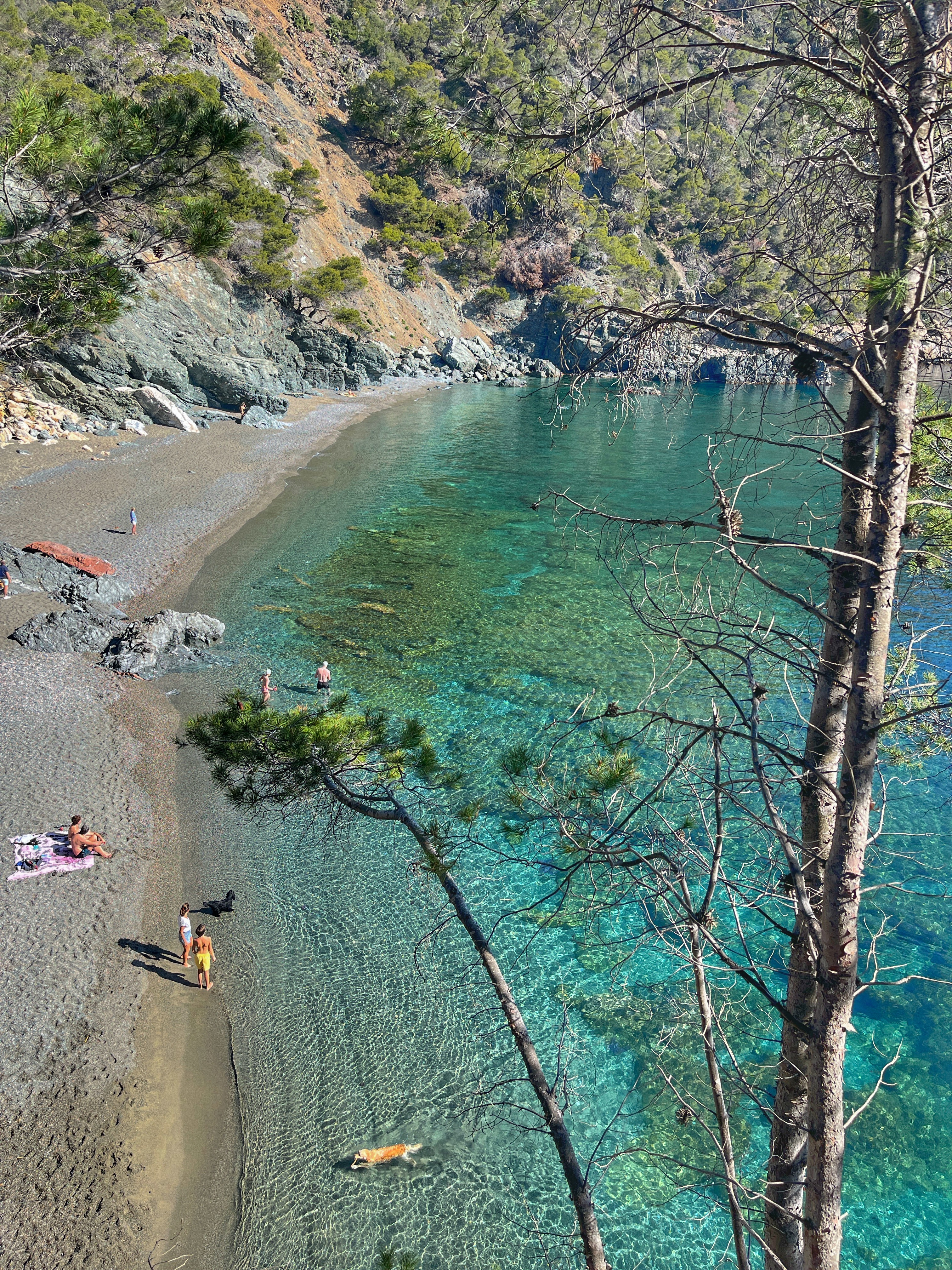 Finalment arribem a la verge i peculiar Platja Fonda, rodejada de pins i amb sorra gruixuda de color gris.