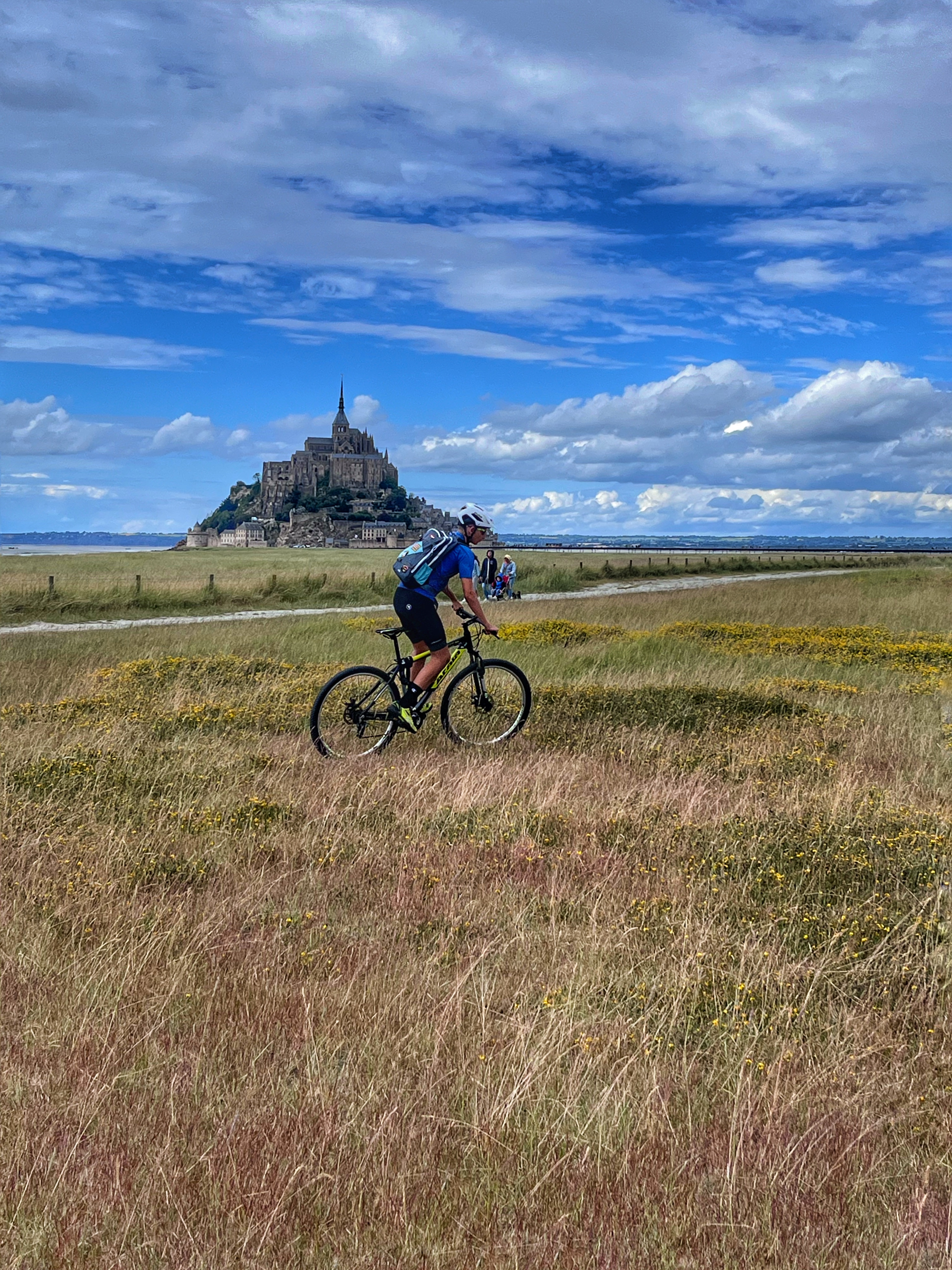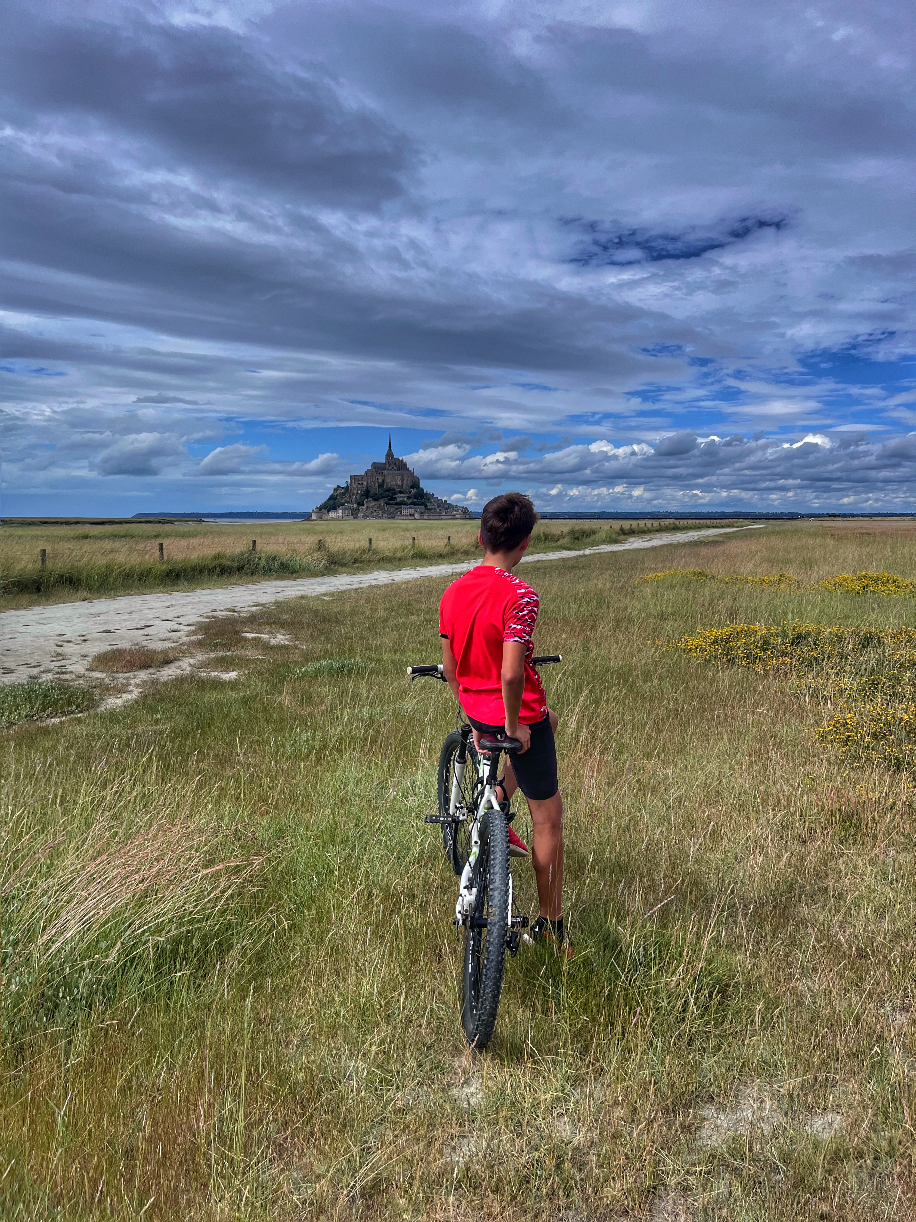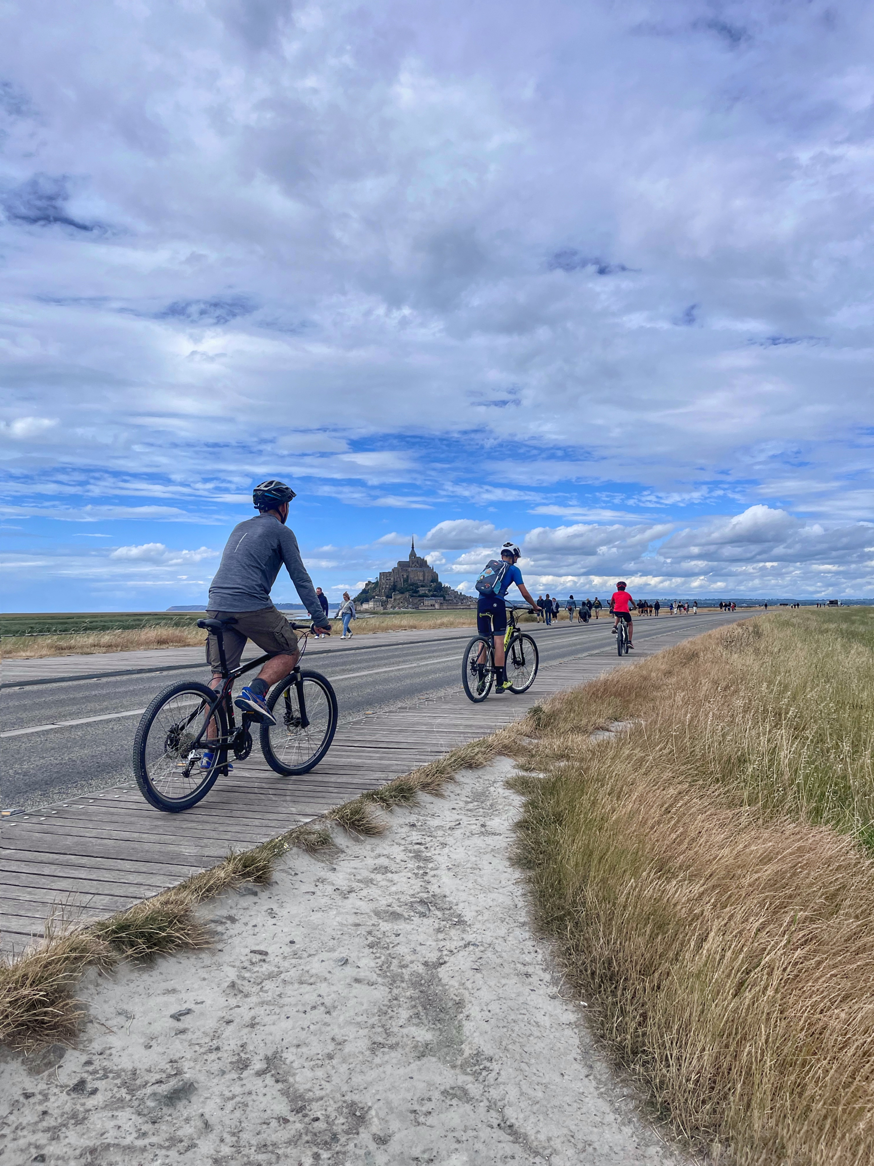 Després de dinar vam preparar les bicis 🚲 per fer l’excursió fins a Le Mont Saint-Michel. Heu de pensar que Le Mont Saint-Michel és un dels llocs més visitats de França 🔝 i és considerat la joia 💎 de Normandia, és per això que si voleu evitar la marea de turistes un bon consell seria visitar-lo com nosaltres, a partir de les 18:00h i així gaudir del màgic capvespre.