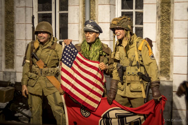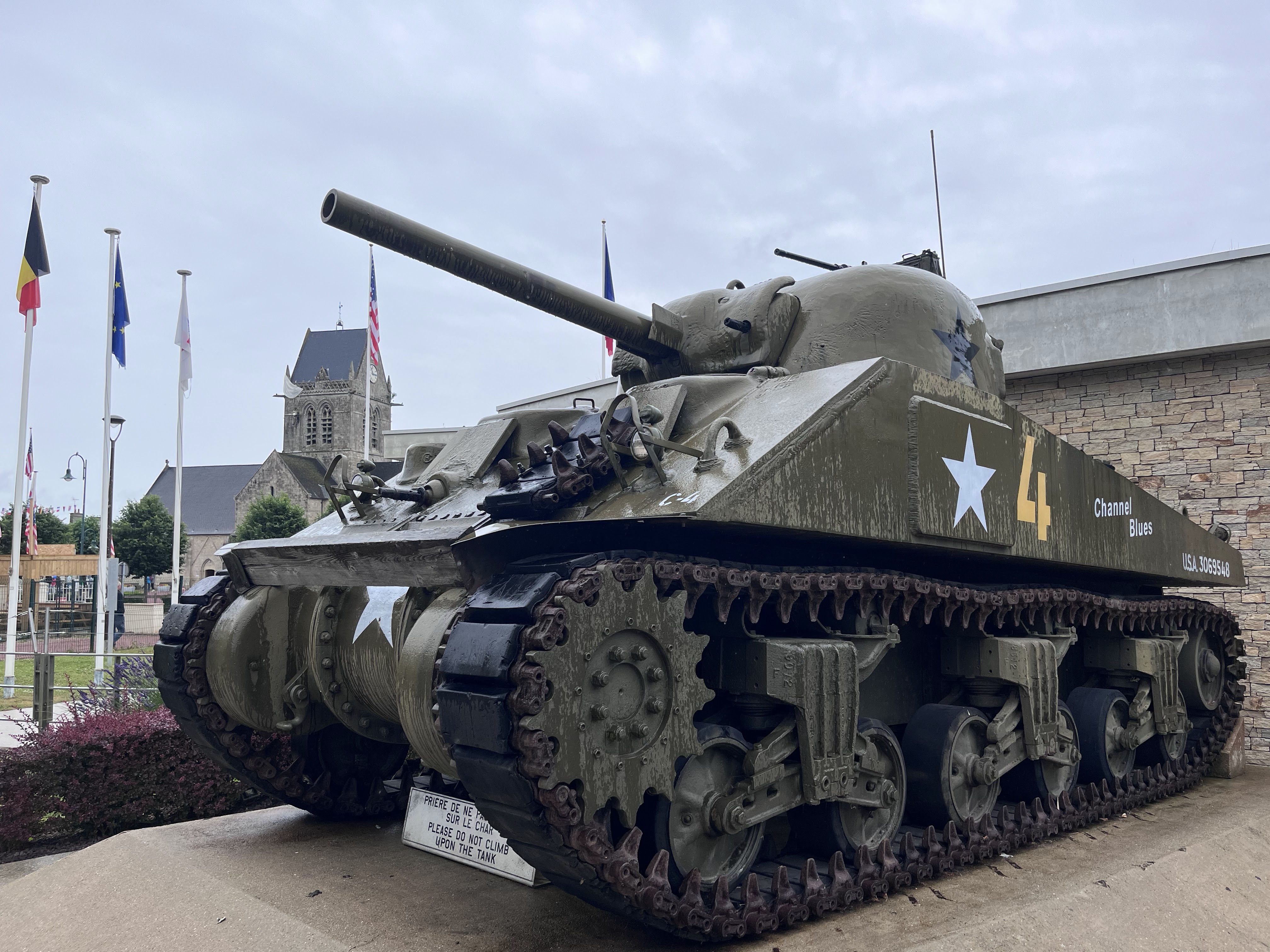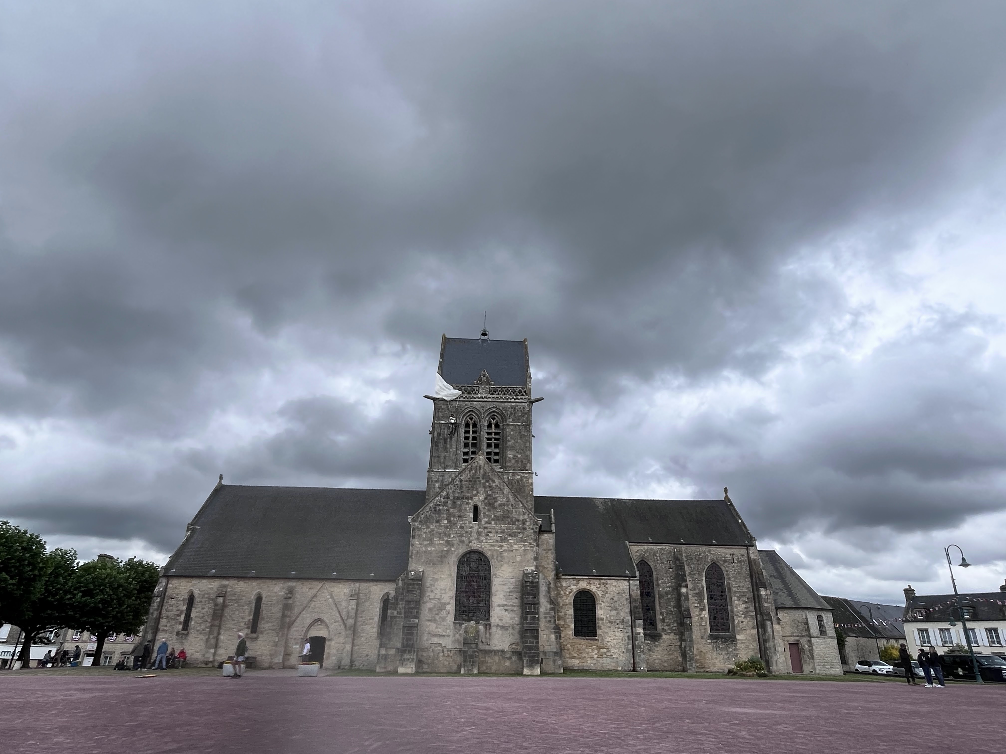 La localitat de Sainte-Mère-Église, a la península de Cotentin, és famosa per haver estat una de les primeres ciutats alliberades el 1944. Les tropes alemanyes 🇩🇪, situades a pocs quilòmetres d’Utah Beach, una de les platges del desembarcament aliat, van perdre el control de la ciutat gràcies als soldats nord-americans 🇺🇸 aerotransportats que van aterrar el dia anterior al desembarcament.