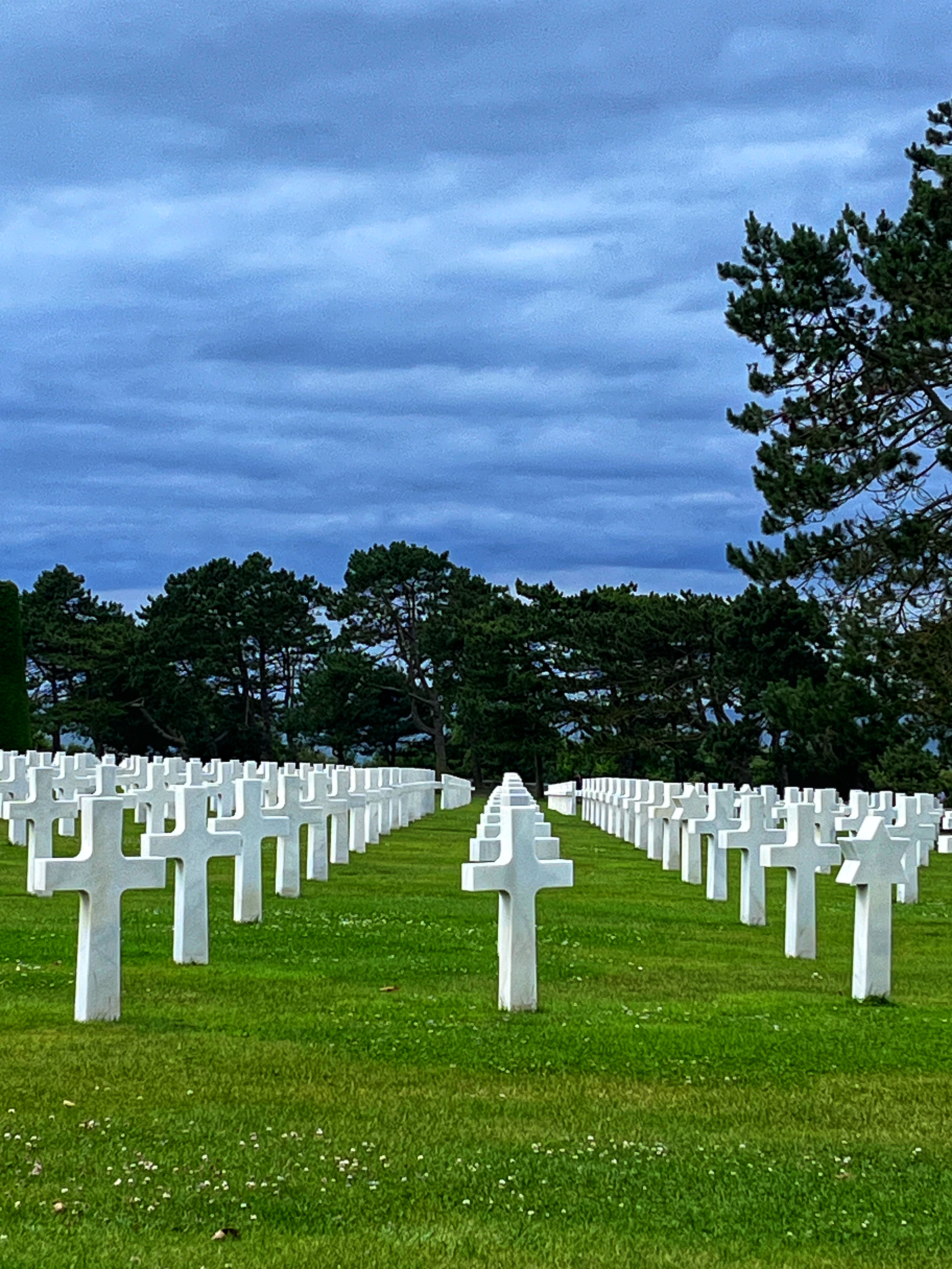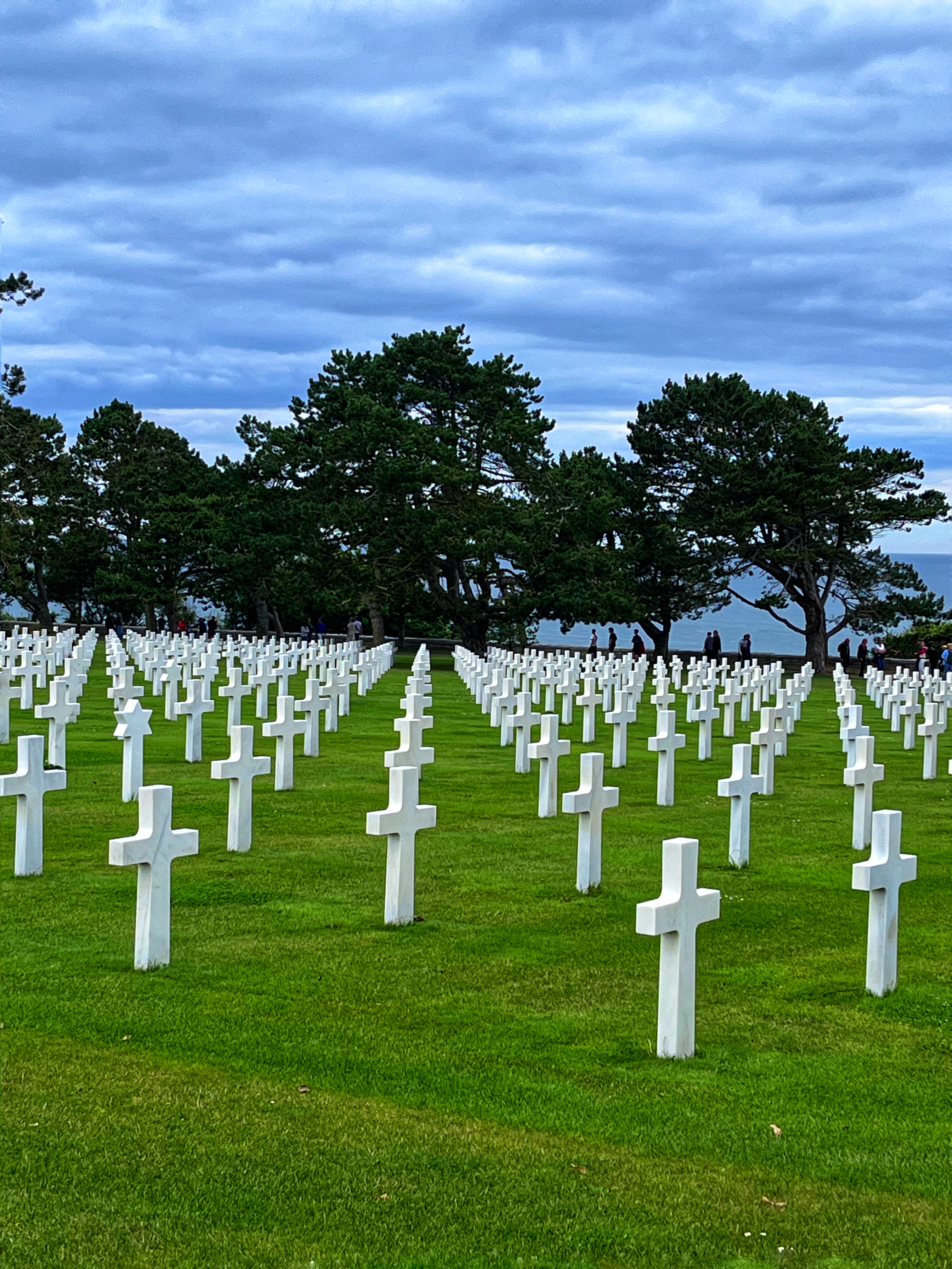 En un espai verd enfilat en un penya-segat amb vista a la platja d’Omaha, gairebé 10.000 creus i estrelles de David de marbre blanc es presenten perfectament alineades apuntant a Amèrica. El silenci del lloc i les creus creen una atmosfera molt especial. La visita va ser realment colpidora. En més de 70 hectàrees, el cementiri d’Omaha alberga les tombes de soldats nord-americans que van sacrificar les seves vides per la llibertat durant la Segona Guerra Mundial, durant el primer episodi de la Batalla de Normandia el 6 de juny de 1944.