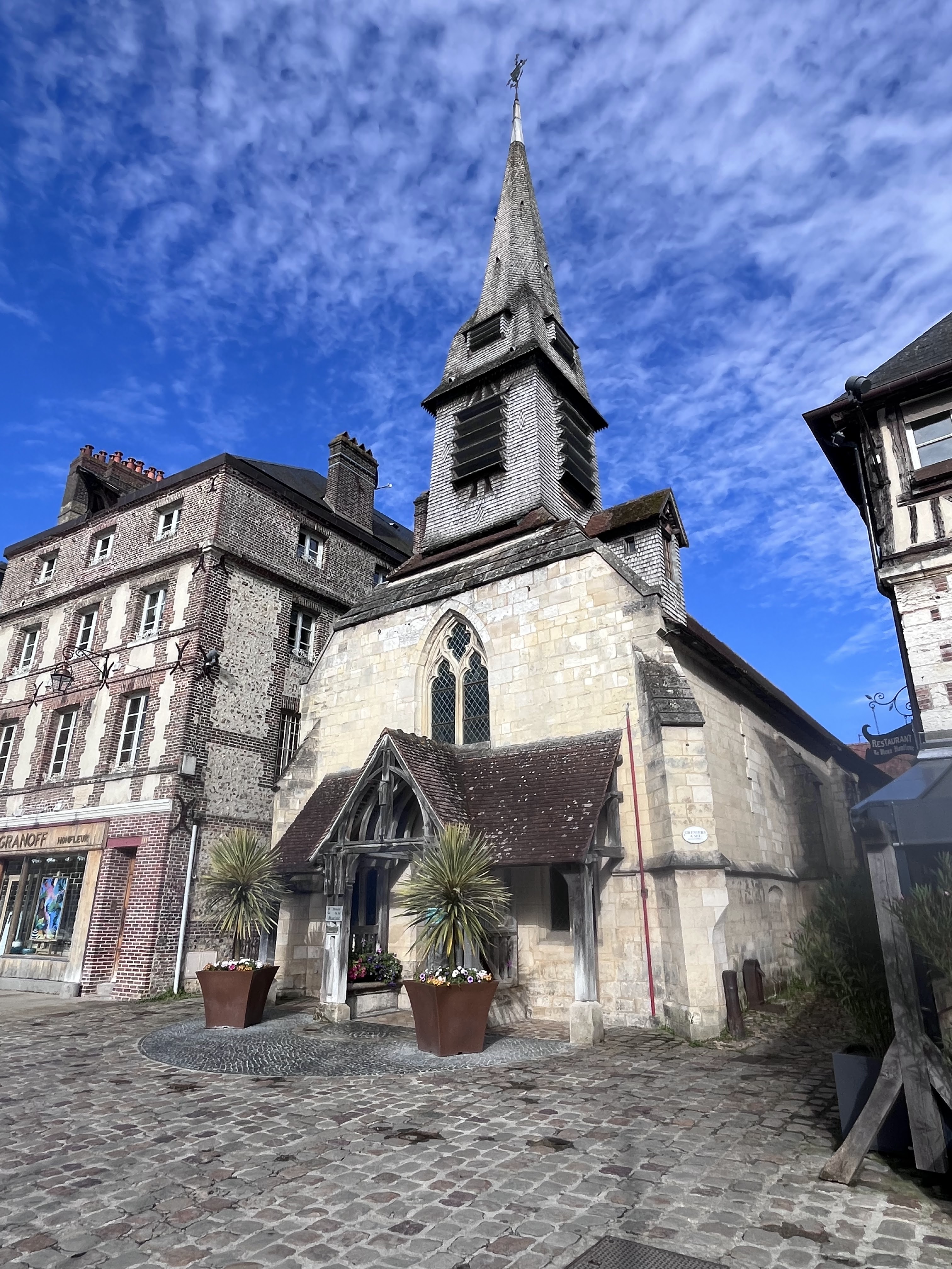 L’església de Santa Caterina, catalogada com a «monument històric » des de 1879, és l’església de fusta més antiga que es conserva a França i la més gran amb un campanar independent. Destruïda durant la Guerra dels Cent Anys, l’església de Honfleur, inicialment de pedra, va ser reconstruïda a la plaça Sainte Catherine al segle XV per una comunitat de constructors navals locals. Com que aquest material era menys car i menys complicat d’obtenir, l’edifici es va construir amb fusta del bosc de Touques. El seu sostre de roure recorda el casc d’un vaixell bolcat!