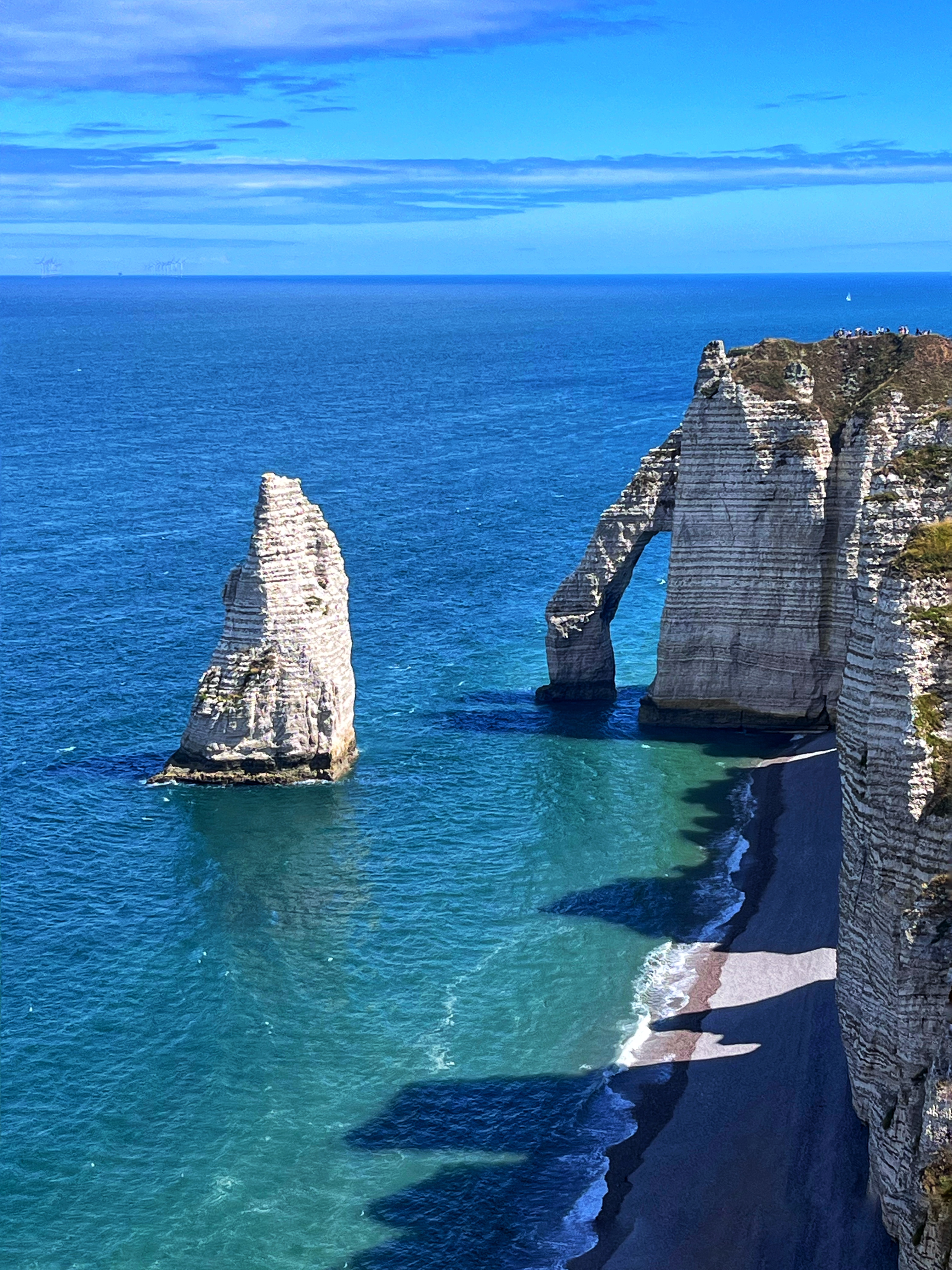 La millor panoràmica 🤩 de les falaises es te des de La Manne Porte, amb la Falaise d’Aval i l’Aiguille als vostres peus. Impressionant!