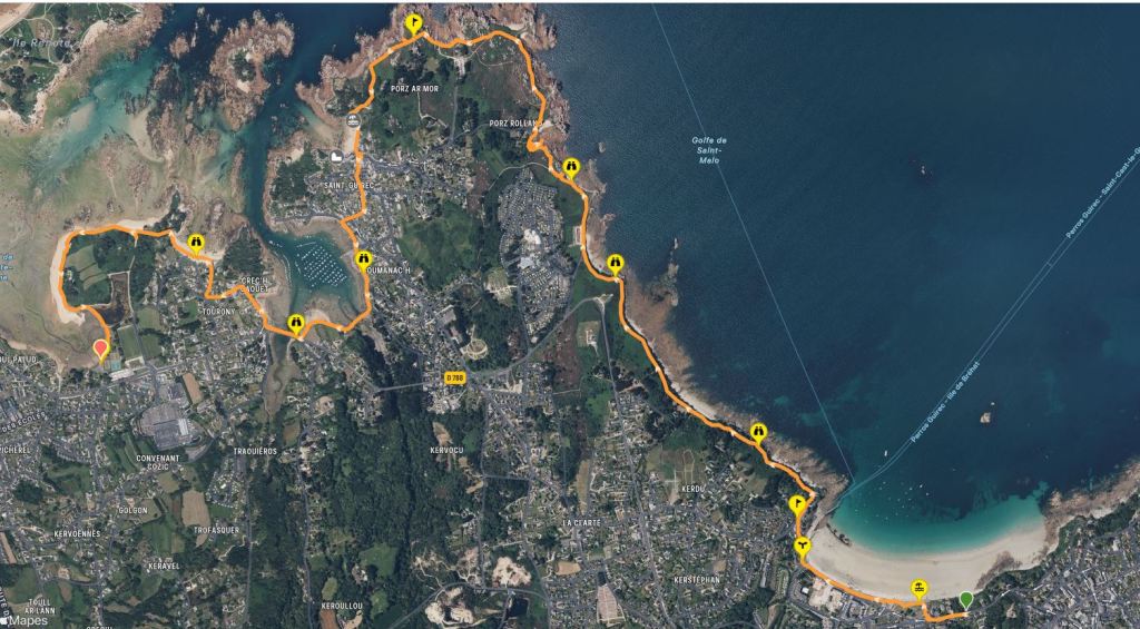 Es tractava d’una ruta fàcil i de les més espectaculars de la costa bretona: durant el trajecte vam resseguir la costa de granit rosa (uns 10km, en 3 horetes), famosa pels colors i formes poètiques de les seves roques pulides per l’erosió. Durant la ruta vam seguir les marques del GR-34, fent part del sender dels duaners. Le Sentier des Douaniers (el sender dels duaners), és un dels més emblemàtics de França, recorrent més de 1800km a tota la costa de la Bretanya, sense deixar de veure el mar.