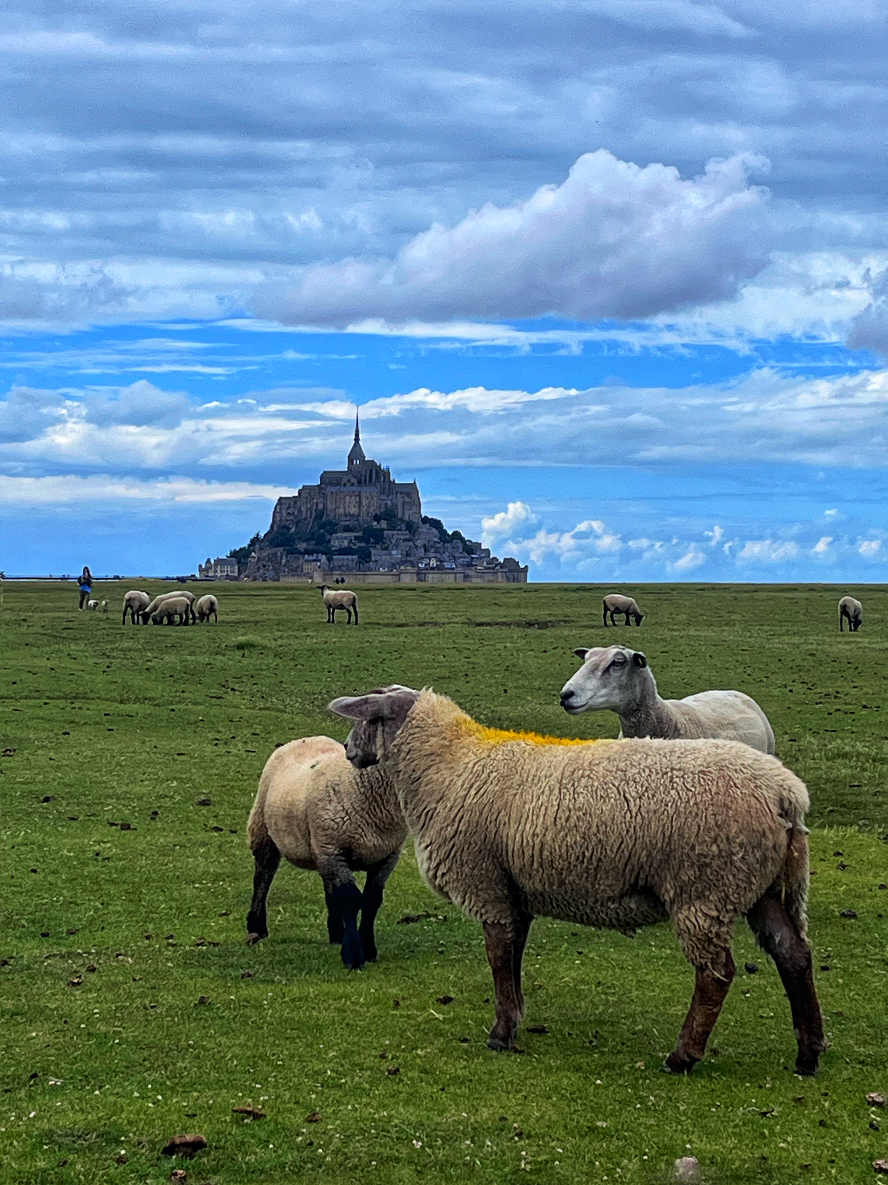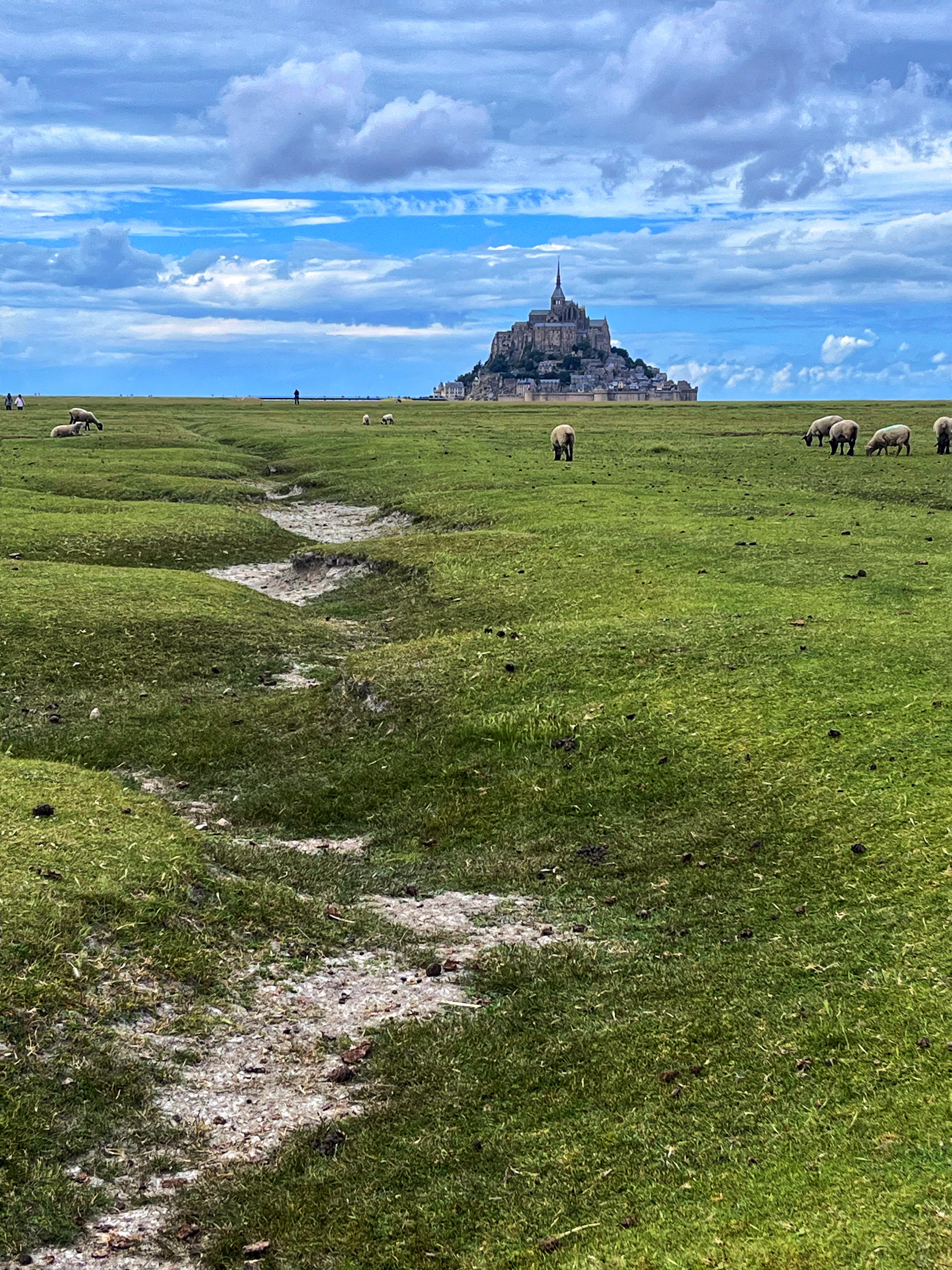 De camí cap a le Mont Saint-Michel ens vam aturar primer a l’Auberge de la Baie on ens vam trobar una tanca perquè no s’escapin les ovelles 🐑, la vam creuar i ens vam apropar fins a la zona coneguda com els meandres de le Mont Saint-Michel, una mena de rierol en ziga-zaga des d’on vam tenir una de les estampes més encantadores i famoses del lloc.