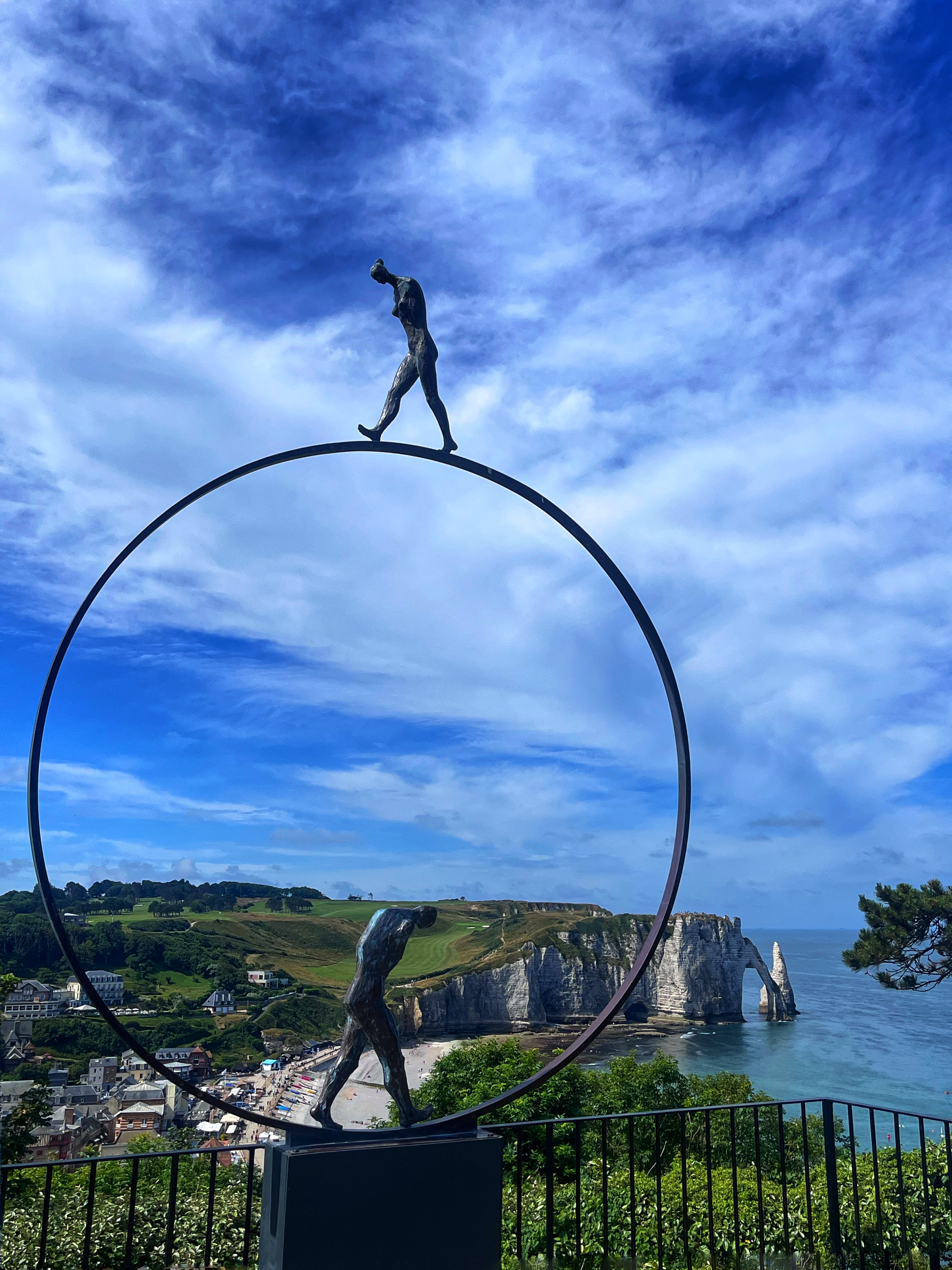 Le Falaise d’Amont, la més petita de les “portes” que formen els penya-segats a Étretat, se la compara amb un elefant que submergeix la seva trompa al mar… Després de pujar per un camí de sorra amb força pendent fins dalt de la falaise, vam poder visitar els jardins d’Etretat, un autèntic museu de paisatgisme i art contemporani a l’aire lliure. La visita és molt recomanable i les vistes de l’Aiguille Creuse i el penya-segat són esplèndides 😍!