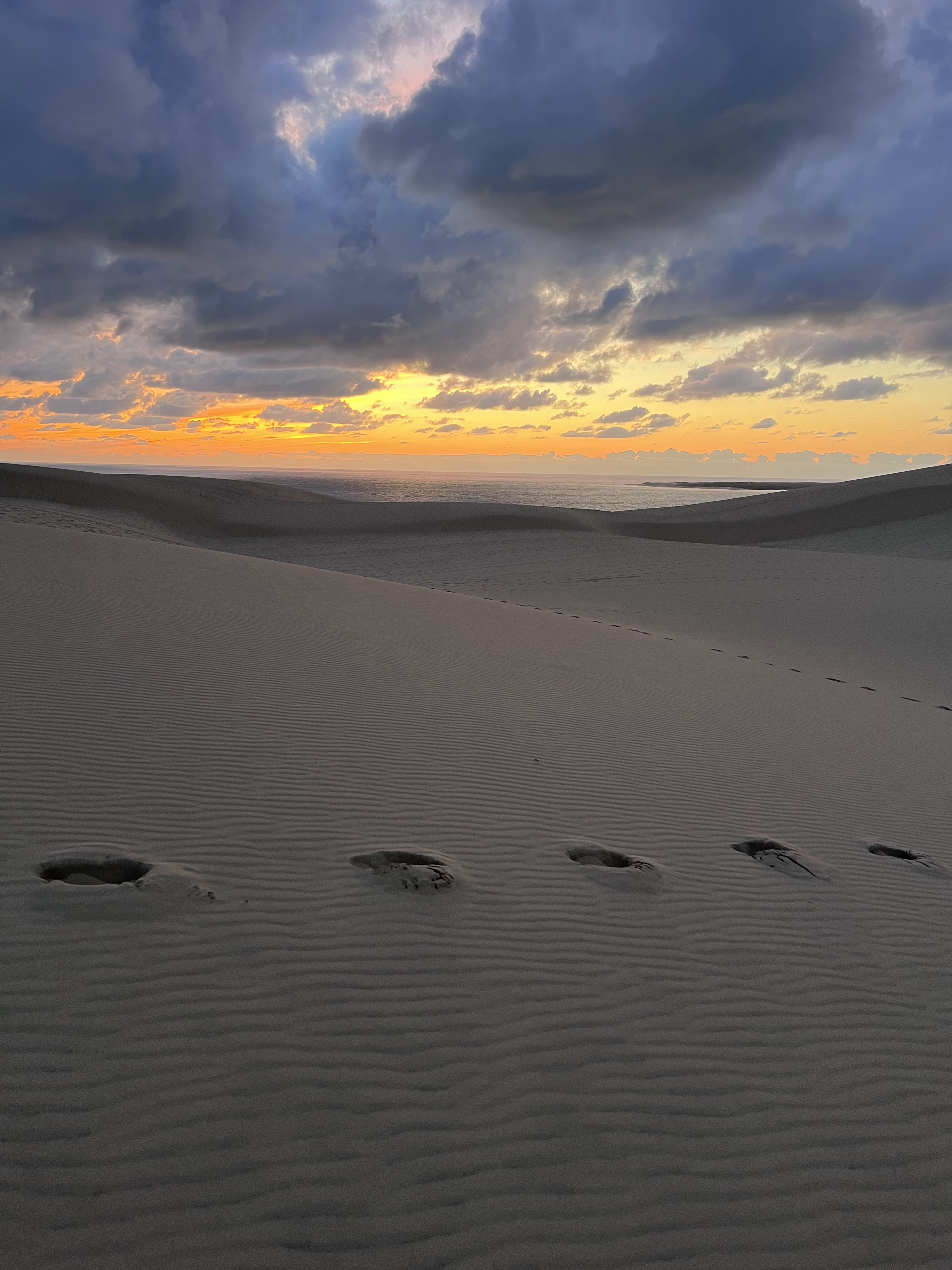 Vam passar la tarda caminant al llarg de la duna, mentre gaudiem als nostres peus, de la platja de Corniche. Si el paisatge ja és meravellós de per si imagineu-vos al capvespre…impressionant😍!