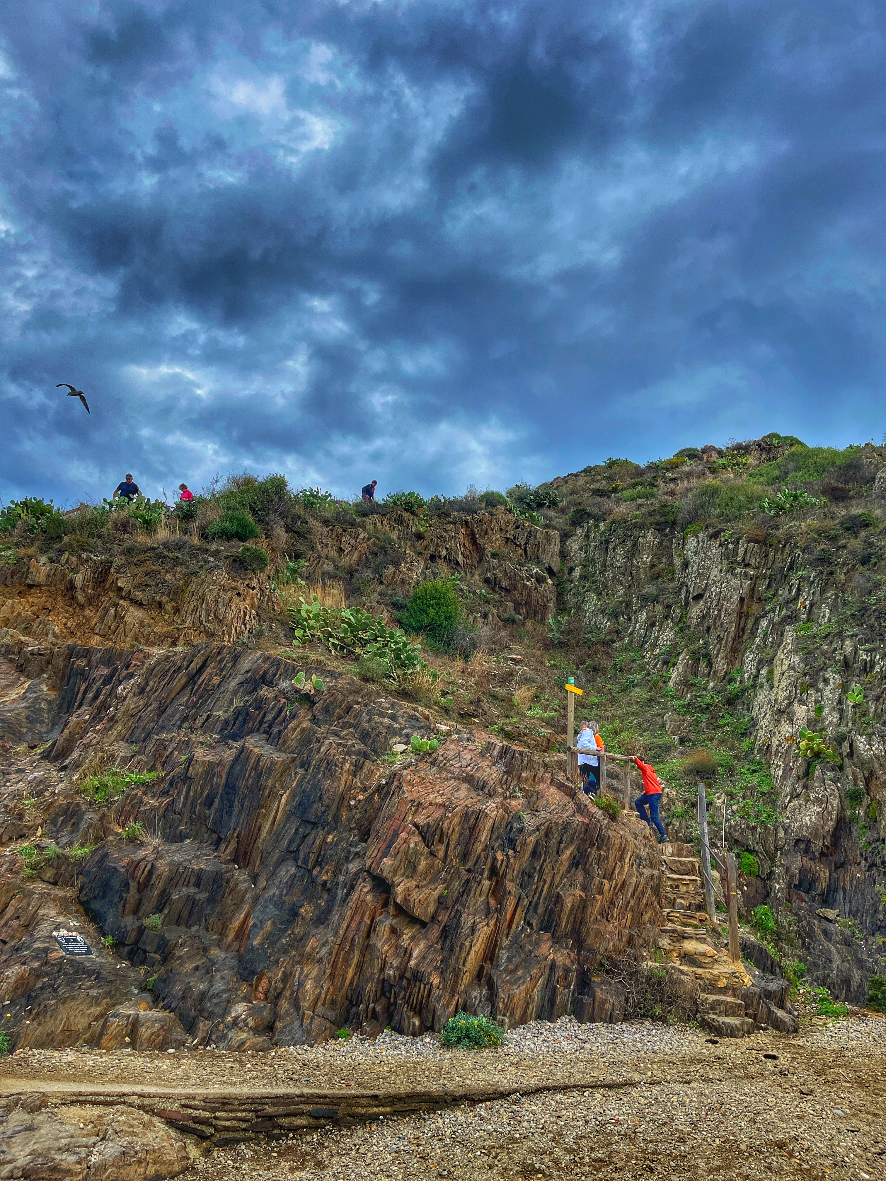 Després de passejar pels carrerons, vam reiniciar la ruta fins a Port-Vendres. Resseguírem el camí que rodeja el castell reial fins a la Platja de Port d’Avall. A partir d’allà el sender puja lleugerament fins a Port-Vendres, amb unes vistes excepcionals de Cotlliure.